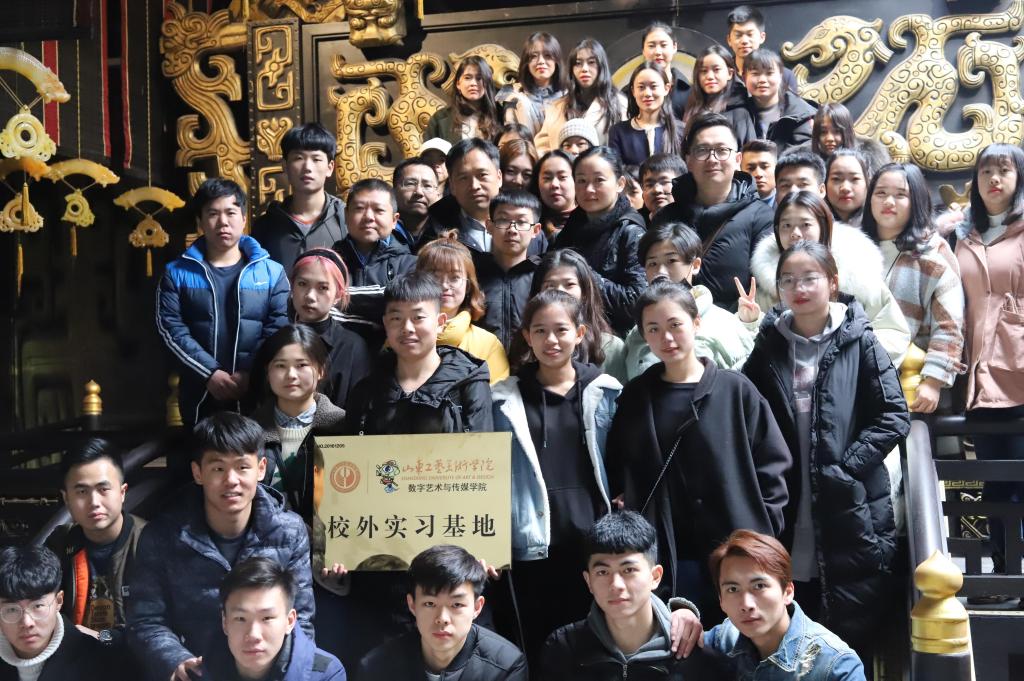 20171227日,数字艺术与传媒学院戏剧影视美术设计教研室在横店影视城与济南聚影众和有限公司举行了校外实习基地挂牌仪式?;疃芯塾爸诤椭朗跎杓剖ι鄄?,高小燕老师、张杰老师、曲衍志老师、赵修泉老师,以及16级和17级学生共同参加。