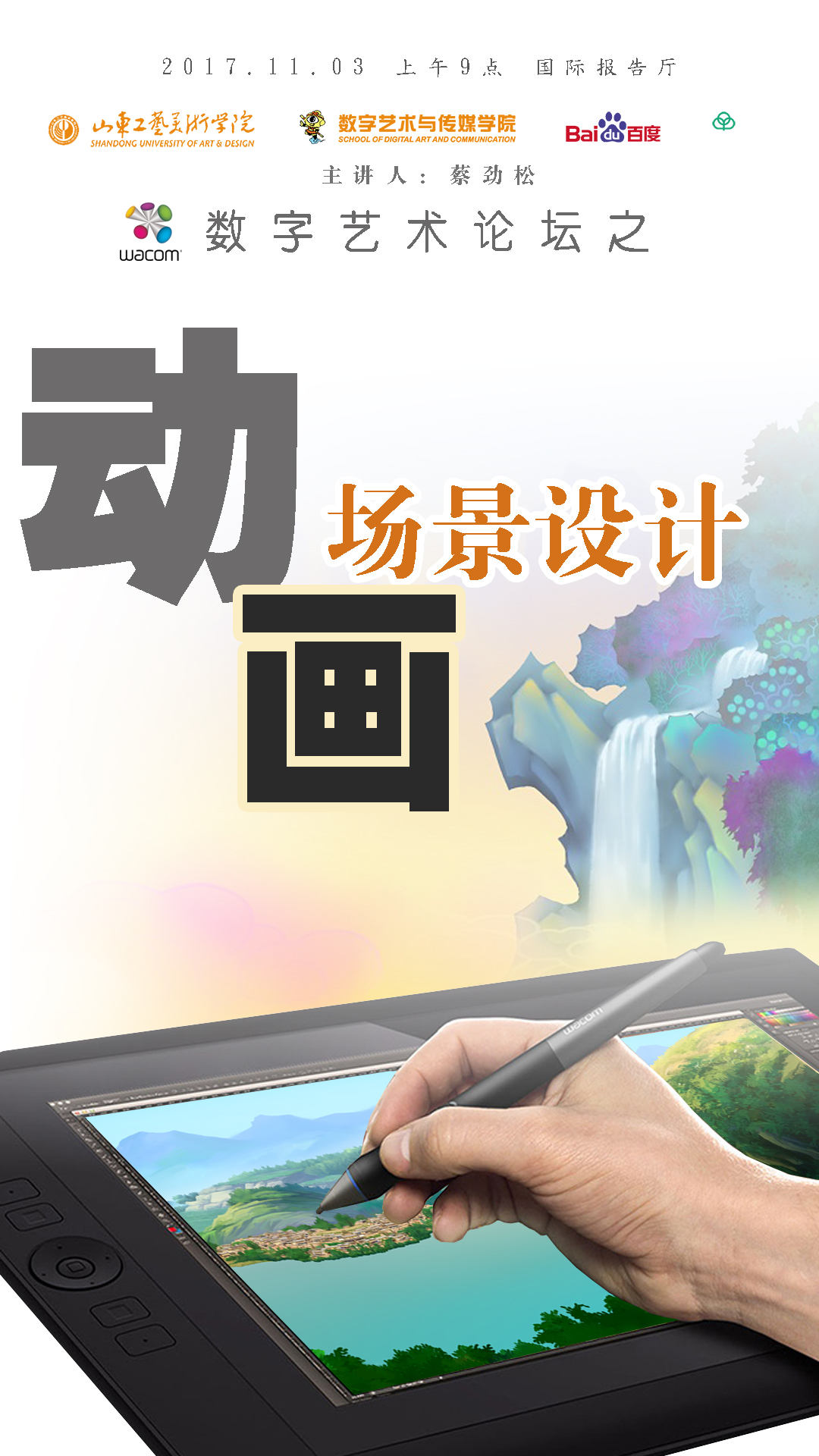 2017年11月3日,数字艺术论坛的第四讲《动画场景设计》在国际报告厅举行。主讲人山东广播电视台动画导演蔡劲松。数字艺术与传媒学院动画教研室副主任张克博担任学术主持。