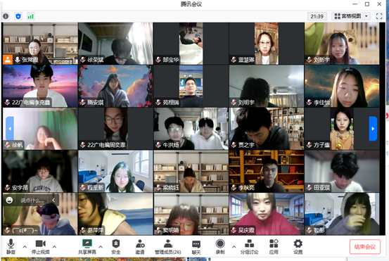 本周数字学院的教学督导不仅从“教”的层面——由分管教学的副院长高小燕和张光帅进入老师上课平台进行线上“教”的督导;更是深入了“学”的层面——12月17日晚,副院长张光帅、教学秘书王皎以及22级学生代表汇聚腾讯会议,举办了“线上学生学习分享会”。