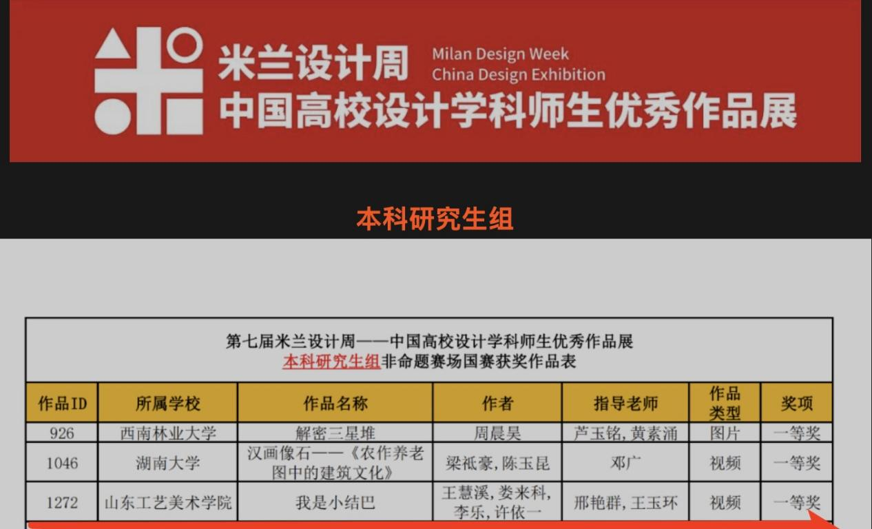 近日,由中国高等教育学会、中国教育国际交流协会联合主办的“第七届米兰设计周高校设计展”全国总决赛评审工作圆满落幕。通过分赛区选拔以及全国评委盲评,数字艺术与传媒学院学生作品《我是小结巴》喜获全国本科研究生组一等奖!