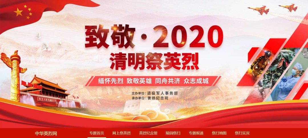 一、进入《中华英烈网》,选择板块“致敬·2020清明祭英烈”。