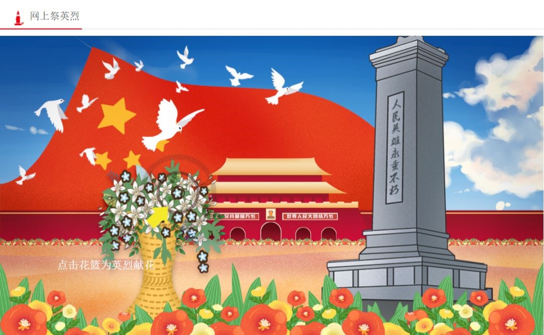 二、下拉屏幕,点击花篮,为英烈献花。