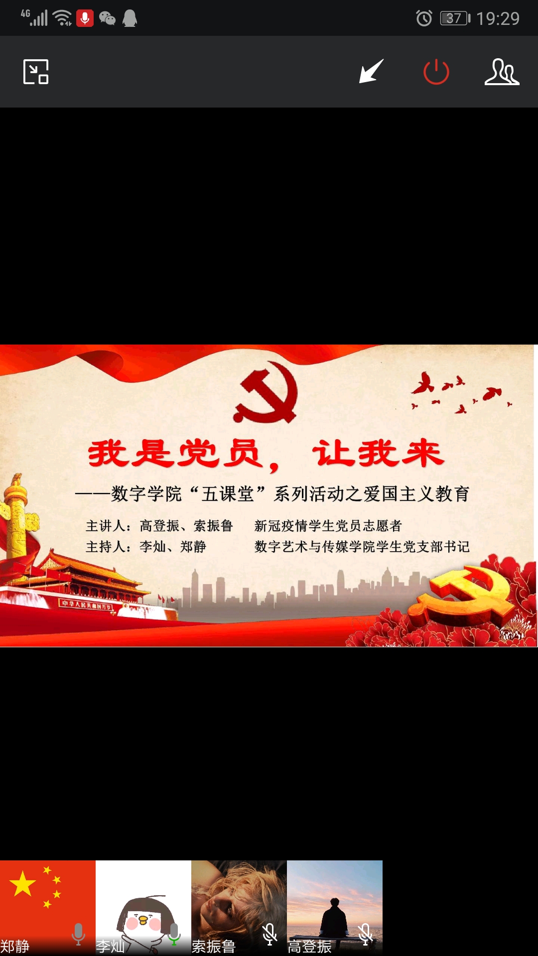 3月5日学习雷锋纪念日,在这个特别的日子里,为了积极响应我校学生工作部《关于在全校大学生中开展新冠肺炎疫情‘五堂课’活动的通知》,将抗击疫情与加强爱国主义教育主题贯通起来,引导大学生在居家期间提升爱国热忱和社会责任感,晚上7点,数字艺术与传媒学院学生党支部利用企业微信视频会议,在学生党员群体中发起了数字疫情“五堂课”系列之“我是党员让我来”特色党课。党课由学生党支部书记李灿、郑静主持,两名疫情志愿者党员主讲,学院全体学生党员参加。