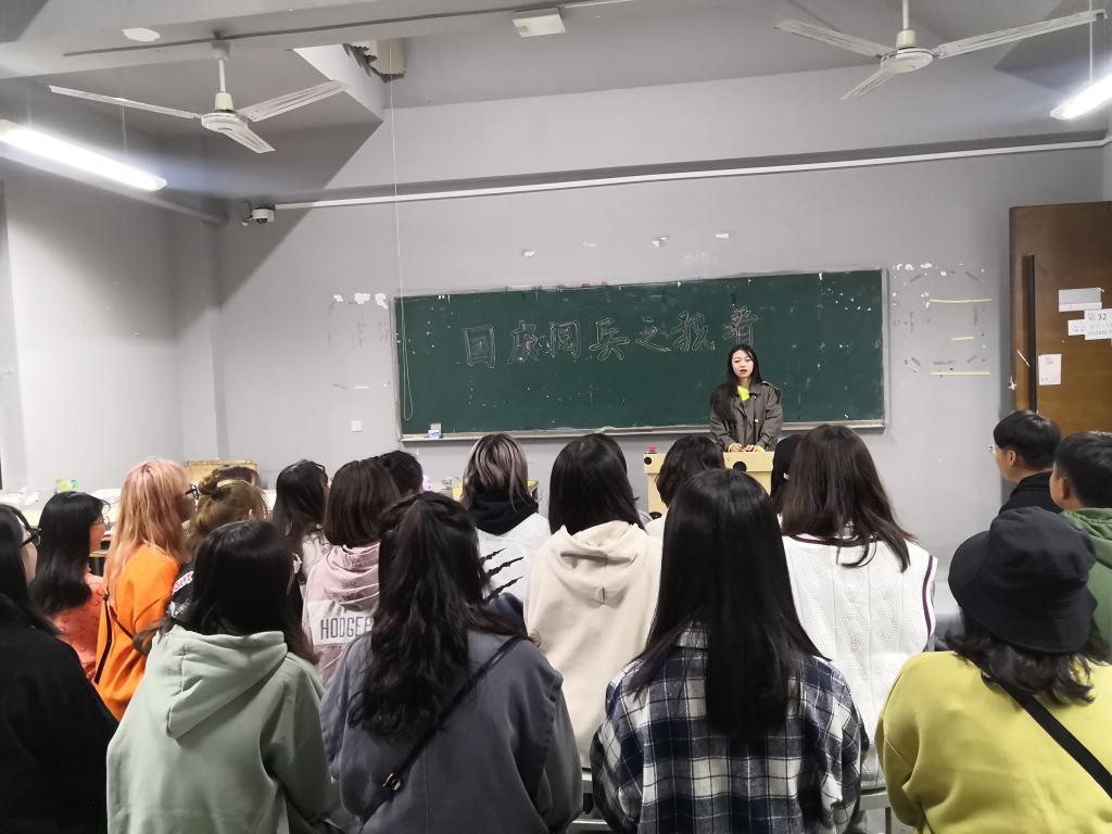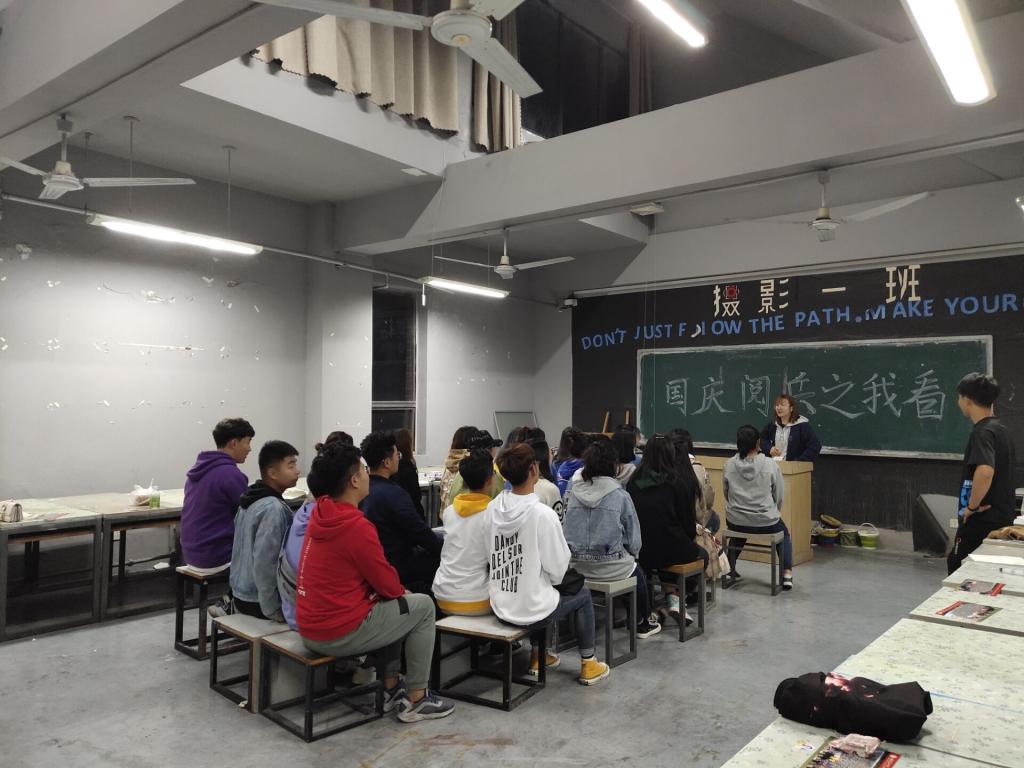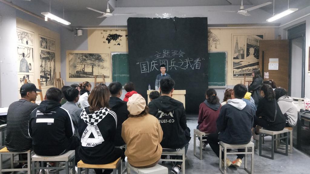 为培养大学生的集体荣誉感与民族自豪感,增强大学生的国防精神,2019年10月7日,在国庆返校后的第一个晚自习,数字艺术与传媒学院组织2019级11个班级分别召开题为“国庆阅兵之我看”的班会,班会由各班级的代理班主任支持。