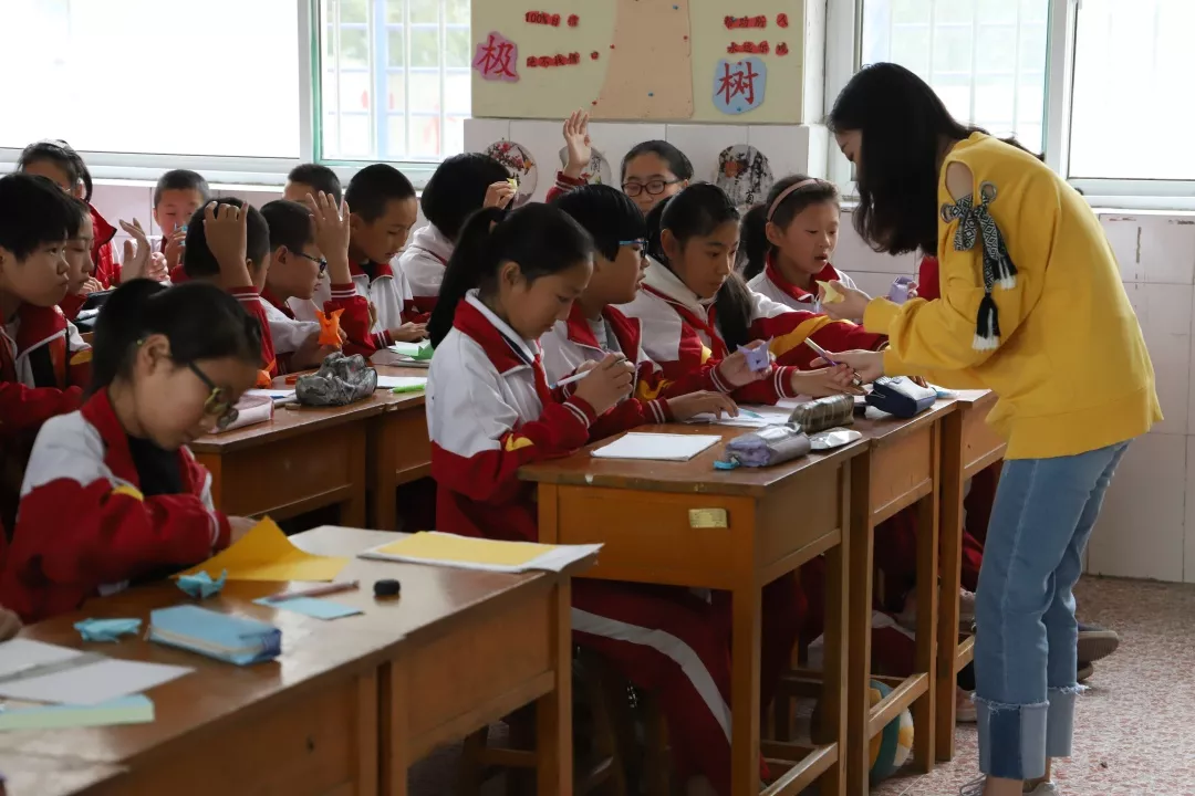 此次活动共派出8名志愿者前往广里中心小学进行授课,授课对象为一年级至六年级的学生,根据学生的年级层次分别进行贴画、纸艺和创意画的讲授。活动伊始,志愿者们通过简单的互动交流挑选出孩子们感兴趣的东西。随后,在课堂上耐心向同学们展示示范画、创意画、手工折纸的创作过程。授课中,志愿者认真的交流与指导,每个孩子都兴趣浓厚、想象力丰富,洋溢着纯真的笑容。