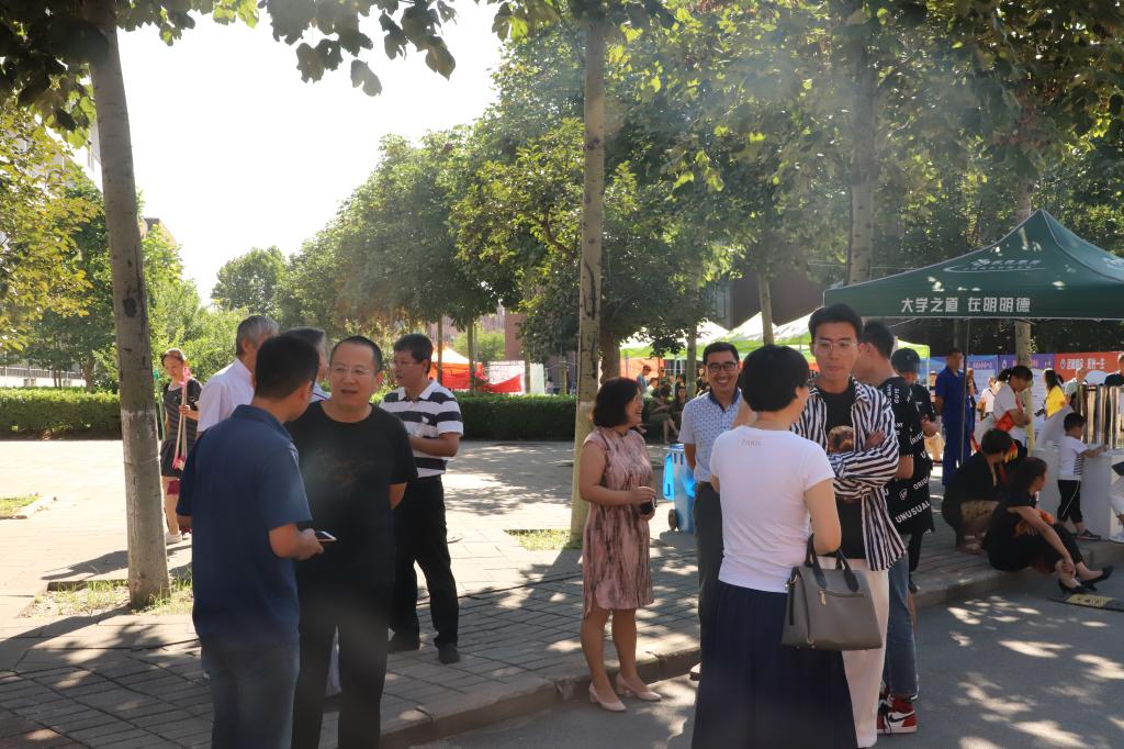 9月7日早上7点,新生们经由迎新人员耐心的指引和醒目的指示标牌来到了迎新工作场地进行报到。为了拉进新同学与父母的关系,我们还特别设置了朋友圈版的特色相框,方便家长与新生合影,并且提供彩色打印机打印照片放置于照片墙上以供留念。迎新过程中,学院院长顾群业、党总支书记丁鲁、副院长吴向阳、党总支副书记李清华等学院领导也莅临指导,并与家长进行了亲切交谈。每位迎新人员都以饱满热情的态度,周到的服务来接待每一位新生,这也彰显了数字艺术与传媒学院良好的精神面貌。截止下午5点,数字艺术与传媒学院迎新工作全部顺利完成。