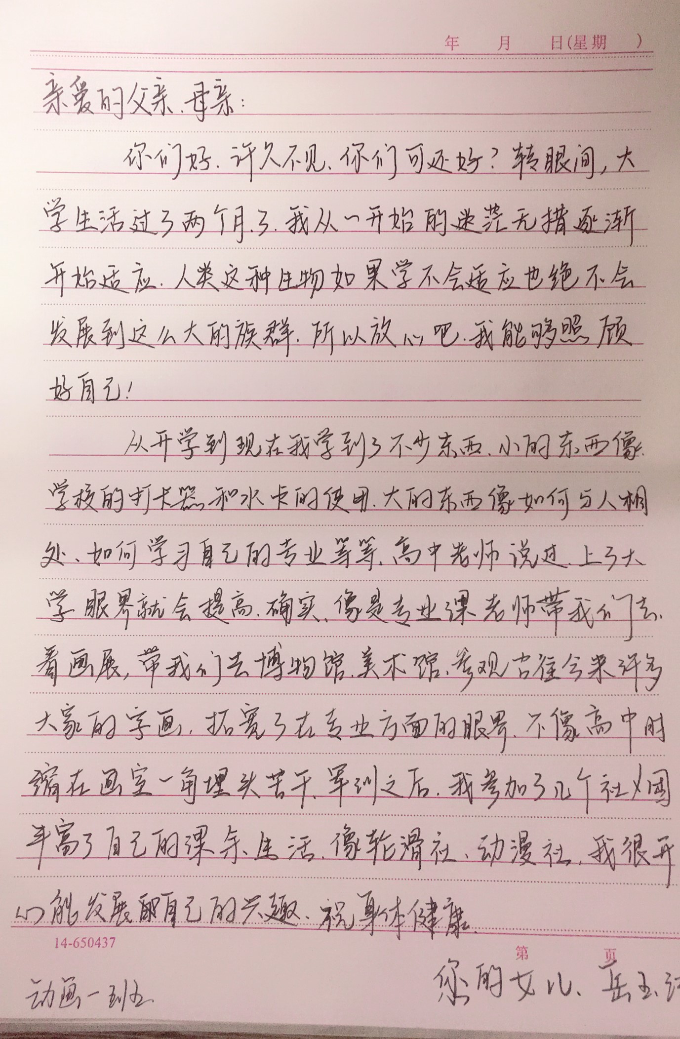 10月24日到10月29日,数字艺术与传媒学院举办了2017级“我的大学——写给父母的第一封家书”活动。