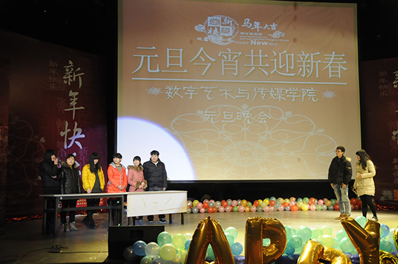 为迎接2014年元旦,丰富大学生活,12月30日中午,数字艺术与传媒学院在数字演播厅进行2014年元旦晚会第二次彩排,出席本次彩排的有团总支部书记、辅导员孙明老师,辅导员张运春,数字艺术与传媒学院学生会主席徐英淦、秘书长申霄、副主席王可安、黄梦洁、学生会办公室主任康伟,以及全体学生会成员和演出同学。