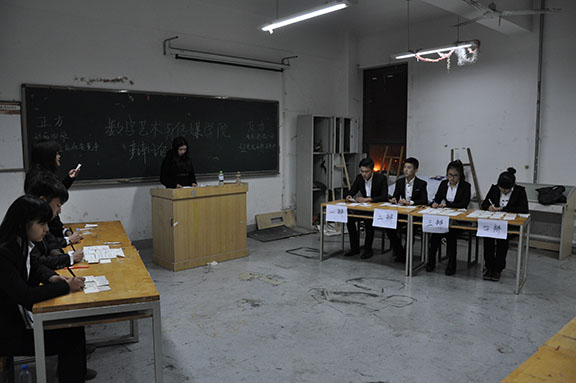 此次比赛的三个辩题分别是:“全才更适应社会竞争还是专才更适应社会竞争”、“医学整容益大还是医学整容弊大”、“与谁同行比去哪里更重要还是去哪里比与谁同行更重要”。比赛开始,首先由主席介绍比赛流程规则。流程的第一环节双方的正反方辩友进行了慷慨激昂的自我介绍。第二环节是他们开门见山地阐述了他们各自的观点。正方一辨用通俗的语言陈述了己方的观点。反方则从层层剖析,论证己方的观点。第三个环节是公辩环节,双方更是争锋相处,步步紧逼,现场气氛迅速升温,达到白热化的阶段。进入第四个环节自由辩论环节。双方你来我往,针锋相对,场上掌声、欢呼声、加油声、笑声不断,大家均对台上选手们机智的反应能力、敏锐的洞察能力、严密的逻辑以及优秀的团队协作能力折服继自由辩论环节之后,比赛进入总结陈词环节。正反方双方辩友的陈词给观众留下了深刻印象。最后一个环节是评委对本次辩论赛做了精彩的点评,他首先表扬了选手们的激情不断、慷慨陈词、仪表大方、陈述清晰。最后,游戏艺术设计一班、戏剧影视与制作一班、影视摄影二班赢得了这次比赛。