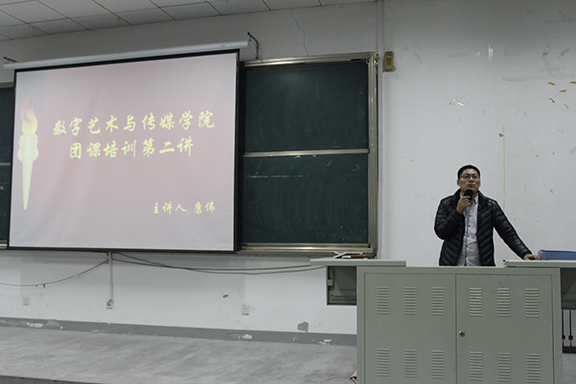 11月13日晚,我院学生会学生会主席徐英淦和办公室主任康伟共同为我院2013级全体新生开展了“数字艺术与传媒学院团课培训的第二讲”。课程培训由办公室主任康伟主持。