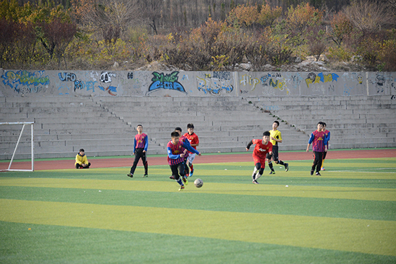 天气略微寒冷,但随着主裁判的开场哨声,比赛现场的气氛迅速升温。比赛正式开始,在紧张的竞争中,数字艺术与传媒学院队员接到了传球,一个假动作晃过防守队员,射出了首开记录。我院场边观众的加油呐喊声响彻整个足球场。首个进球使得我院在接下来的比赛中一直占据主动地位,并多次将球带到对方球门附近,给对方施加了很大的压力。正在两队激烈抢拼时,由于视觉传达设计学院队员的失误,又给我院进了一球,我院观众再次响起欢呼声。在最后还剩下不到20分钟的时间里,我院队员们齐心协力,再次把球射进了对方的球门中,又赢得一球。数字艺术与传媒学院最终以3:0的成绩战胜视觉传达设计学院。