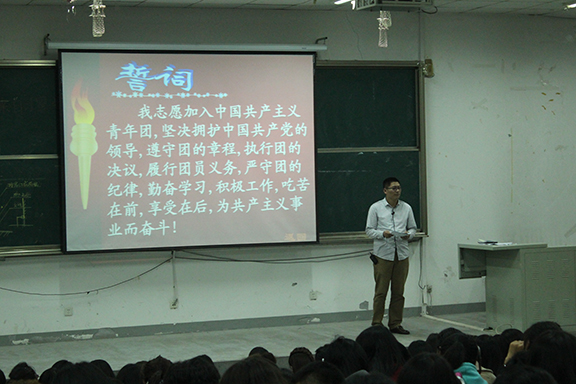 讲授课程一开始,办公室主任康伟给同学们讲述了团课的重要性,并要求大家必须以高度认真的态度对待,积极参加,认真学习。接下来又给大家讲解了团课结业考试的时间及考核方式。本次课程分为两部分,第一部分是了解团的基本知识,包括团的性质、团员的义务与权利、团旗、团徽、团歌、团员证、团费等内容。第二部分是讲述团的历史。五四运动和一二九运动都是让我们铭记于心的,时代的背景反映出团组织的密切合作是必不可少的,让同学们体会到了共青团的力量,更有星星火炬,代代相传的精神。康主任认真备课,制作出生动活泼的课件,讲课诙谐幽默,期间同学们掌声不断,在讲解的过程中结合了理论知识,集体讨论,提问等环节。其间,同学们都十分认真的做好笔记,踊跃提问,并积极回答问题,课堂气氛活跃。最后全体新生起立合唱了团歌《光荣啊,中国共青团 》,在大家嘹亮的团歌声中结束了这次培训。