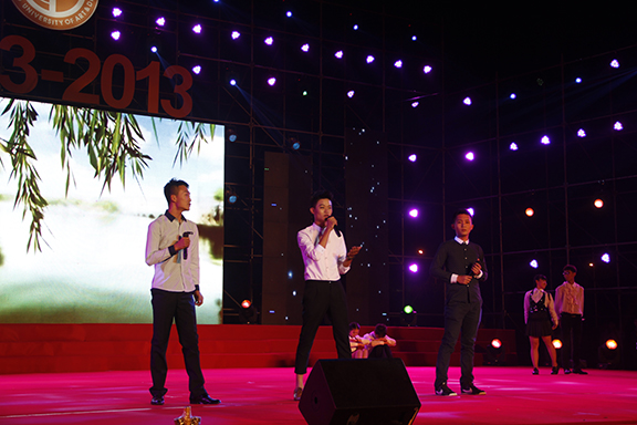 桃李芬芳,硕果累累,我校迎来了四十周年的盛大庆典,三个篇章、精心筹备的14个精彩而又富有意义的节目。为我校四十周年华诞增添了绚烂的一笔。其中由数字艺术与传媒学院的同学参加表演的《光阴的故事》、《青苹果乐园》、《设计师的摇篮》、《相亲相爱》等四个节目充满真挚的情感,点燃了全场的激情。我院信传文、郭谦、任铭超、李宁等同学的倾情演出,更是将晚会气氛推上一个又一个高潮。共叙辉煌,拥抱明天。师生同台,节目精彩迭起。最后,在大合唱《二十年后相会》的伴随下,晚会进入了尾声。