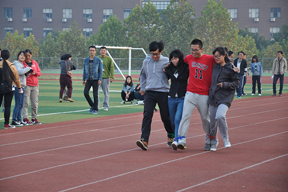 一进入赛场,就能感受到浓浓的比赛氛围,每组队员都在专心练习,等待比赛正式开始。随着哨声的响起,每组队员都团结起来,喊着号子一齐向着终点奔跑,即使摔倒了,也相互搀扶着走向终点。霎时间,全场都为他们响起了掌声与加油声!哨声落下,比赛也随之结束,但比赛中建立起来的友谊不会落下,拼搏的勇气也不会散去!