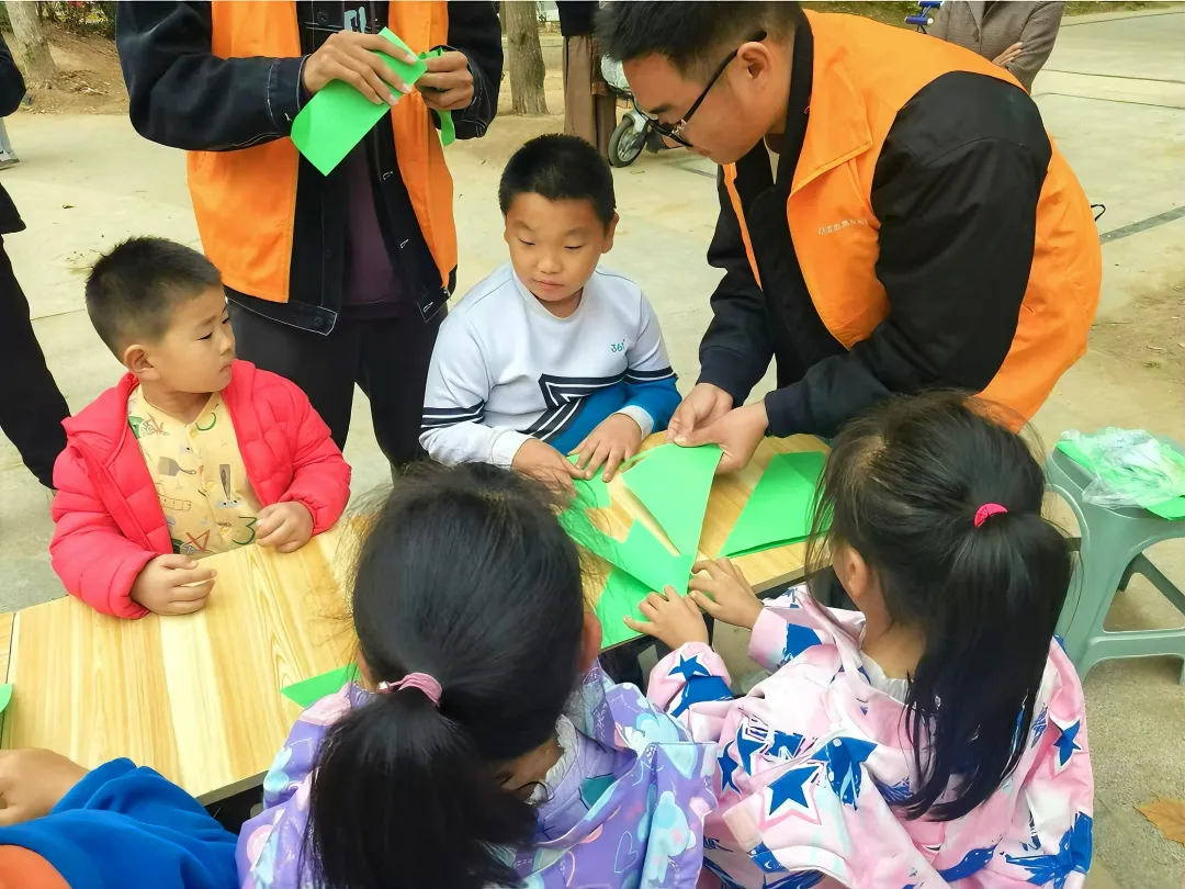 活动临近尾声,满天星志愿服务队志愿者组织小朋友们一同制作红军帽,向红军战士们致敬。小朋友们在妙手巧思的同时学习红军的光荣传统和优良作风。