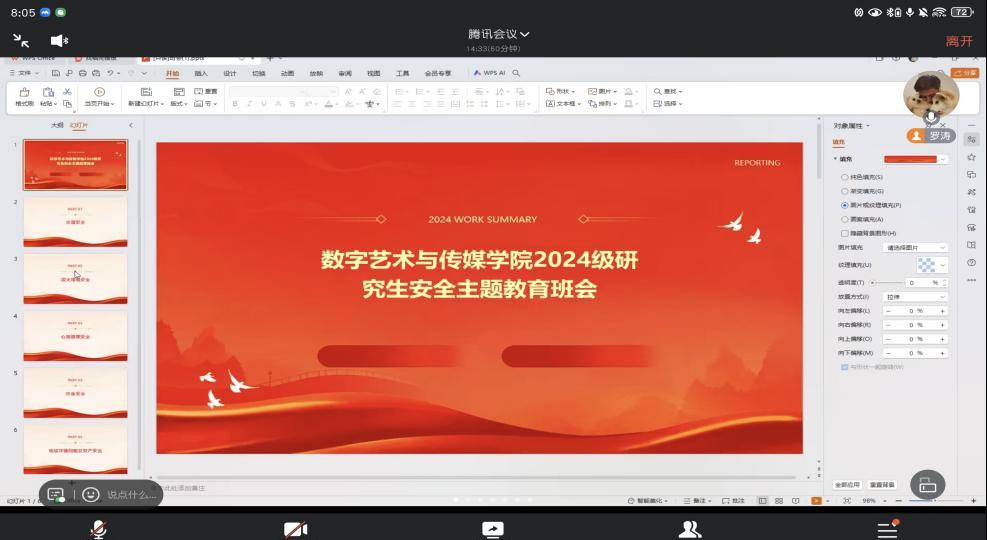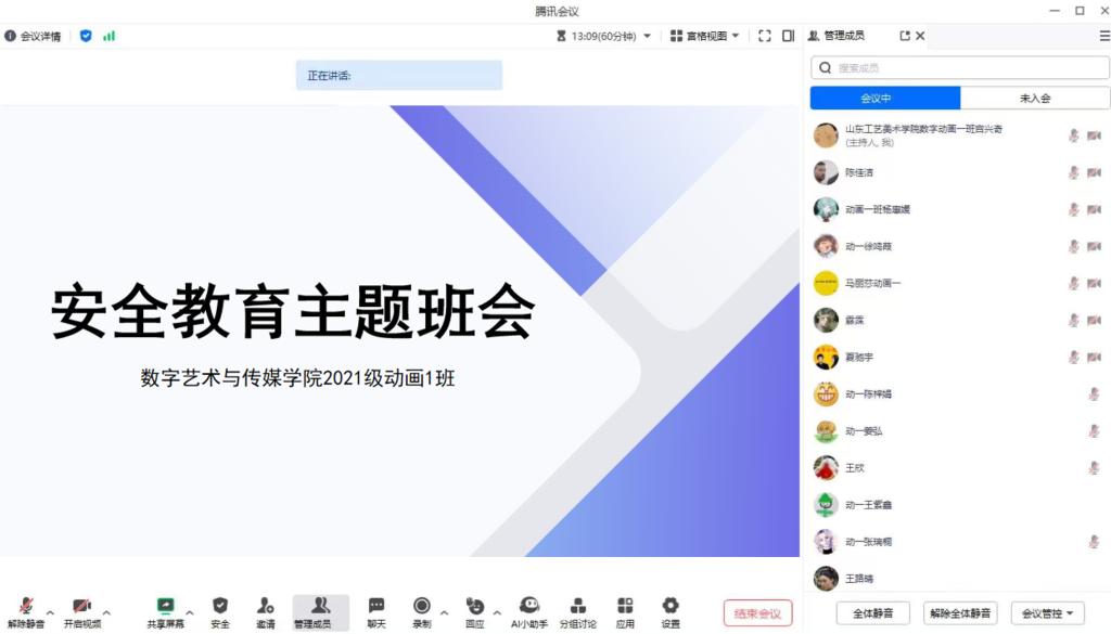 为进一步提高学生的安全意识,强化学生自我?;つ芰?,营造安全、和谐、稳定的校园环境,11月19日-22日,数字艺术与传媒学院本科生、研究生各年级陆续组织召开了安全教育主题班会。