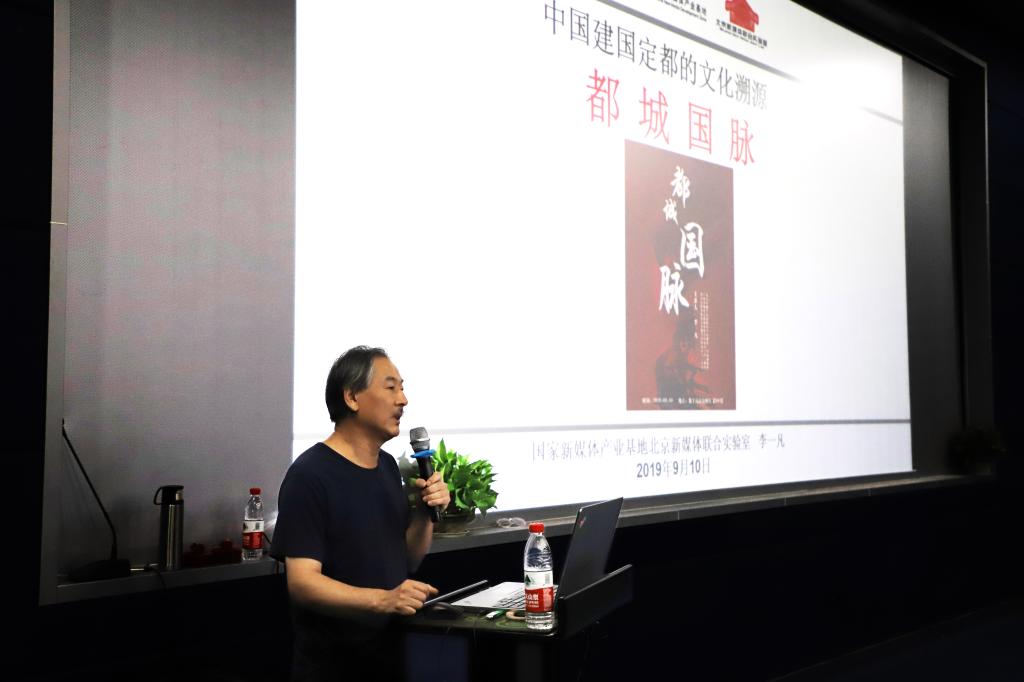 9月10日下午,数字艺术与传媒学院邀请国家新媒体产业基地北京新媒体联合实验室负责人李一凡教授在长清校区举办《中国建国定都文化溯源——都城国脉》讲座,山东工艺美术学院副院长董占军教授出席讲座并与李一凡教授交流。数字艺术与传媒学院游戏艺术设计教研室主任张光帅,教师李杨、王博、张宝珠、冯秀斌与数字媒体艺术、广播电视编导、影视摄影与制作专业的200余名学生一起听取了讲座。讲座由数字艺术与传媒学院院长顾群业教授主持。