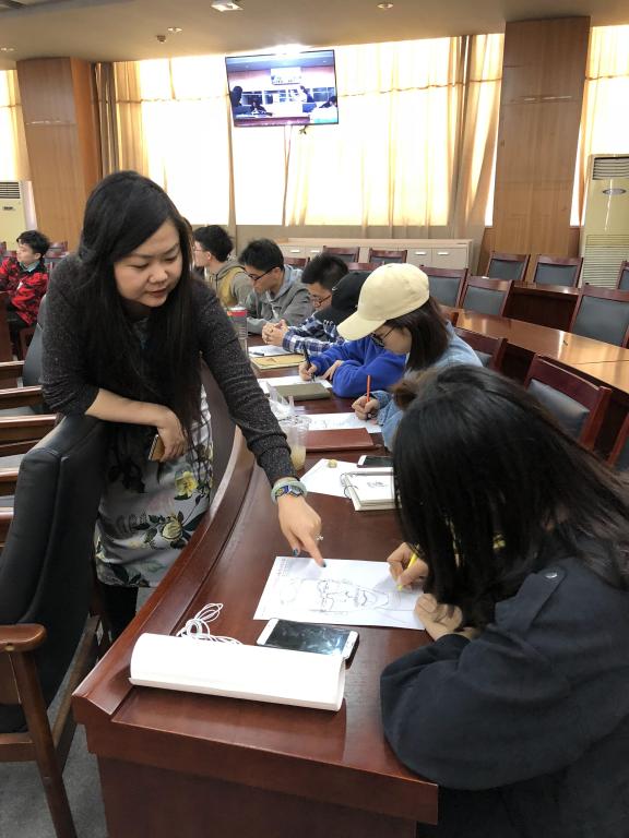 乐思婷老师以其深厚的理论功底,通过生动的案例分析,分享自己在国外不同形式的手绘示范视频,现场的亲自示范和点评同学们“Continuous Line”的手绘方式,向学生们传递了不同的手绘风格及手绘方式的多样性,启发学生们根据自己的兴趣点选择适合自己的手绘形式,形成自己独特的风格。