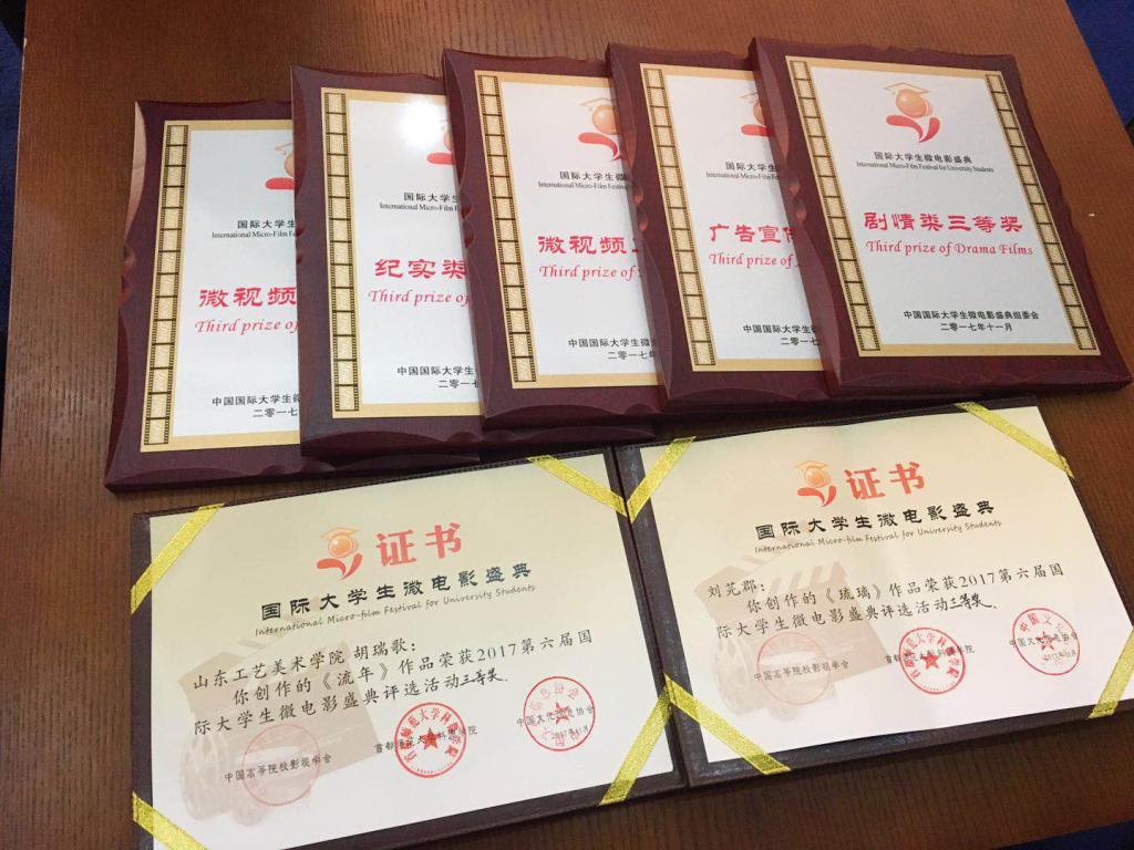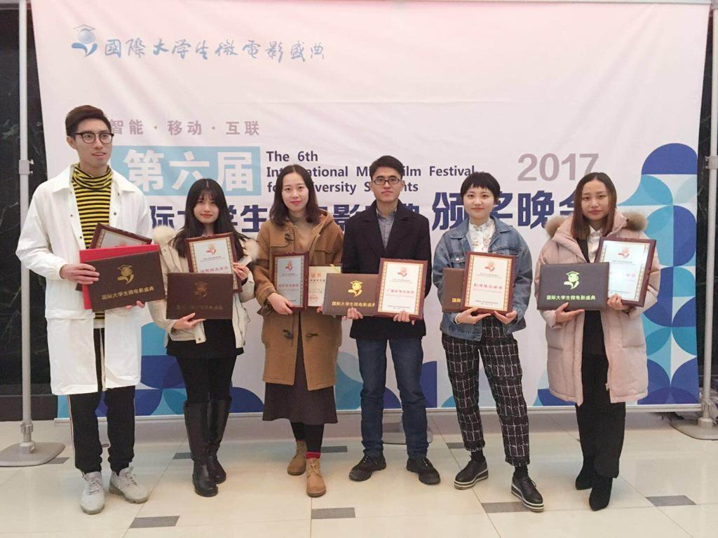 我校学生斩获第六届国际大学生微电影大赛多个奖项 第六届国际大学生微电影盛典颁奖典礼于11月18日晚在首都师范大学科德学院本部礼堂落幕。我校数字艺术与传媒学院五部作品经评审委员会评选入围终评并斩获各竞赛单元的奖项。其中,于雨琳导演的《半大脑壳》获得剧情类三等奖,苏含敏、汪文静创作的《疯狂马戏团》获得广告宣传类三等奖,刘芫郡编导的《琉璃》获得纪实类三等奖,胡瑞歌的《流年》和项琴的《父亲》获得微视频类三等奖。 第六届国际大学生微电影大赛由中国高等院校影视学会、共青团北京市委员会、中国社会科学院新闻与传播研究所世界传媒中心、首都师范大学、中央新影集团、中国教育电视台、宁夏回族自治区银川市人民政府、中国文化信息协会独家承办,北京青少年网络文化发展中心、中国传媒大学、北京电影学院、央视六套《今日影评》栏目承办。 本届盛典活动组委会收到了来自国内外共5000多部作品,从中遴选出优秀作品100部入围终评,大赛所征集的优秀作品将在电视媒体以及网站展映推荐和宣传,并邀请获奖的主创人员与专家、学者面对面交流。
