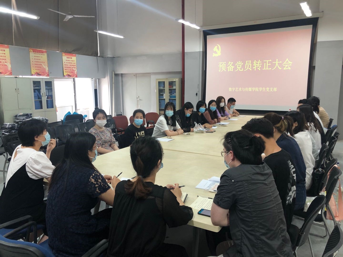 2020年6月26日,数字艺术与传媒学院学生党支部在综合楼四楼B446会议室召开中共预备党员转正大会,研究林森、江官明、高登振、向雪芹、丁邦根、成文静、李梦雨、王春啸、柳逢源、陈慧敏十位同志预备党员转正事宜。本次会议由学生党支部书记李灿主持,党总支副书记李清华、学生党支部书记郑静出席会议。