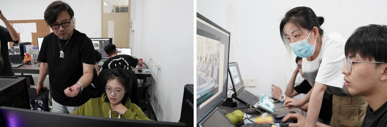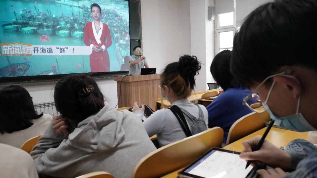 9月8日、9月15日,西海岸新区广播电视台行业专家两次来到青岛基地,进入课堂指导学生进行《影视栏目包装》课程的实践创作。