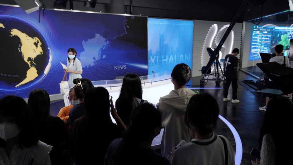 9月2日上午,课程师生在西海岸新区广播电视台进行实地考察调研。经电视台多位专家的讲解,同学们深入了解了目前国内最新的全媒体立体化传播体系,并参观了融媒体中心、4K高清数字演播厅、新闻演播室、5G新闻采访通信车、后期制作工作室等。