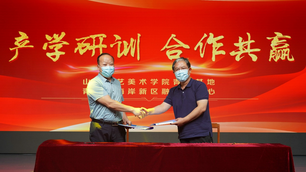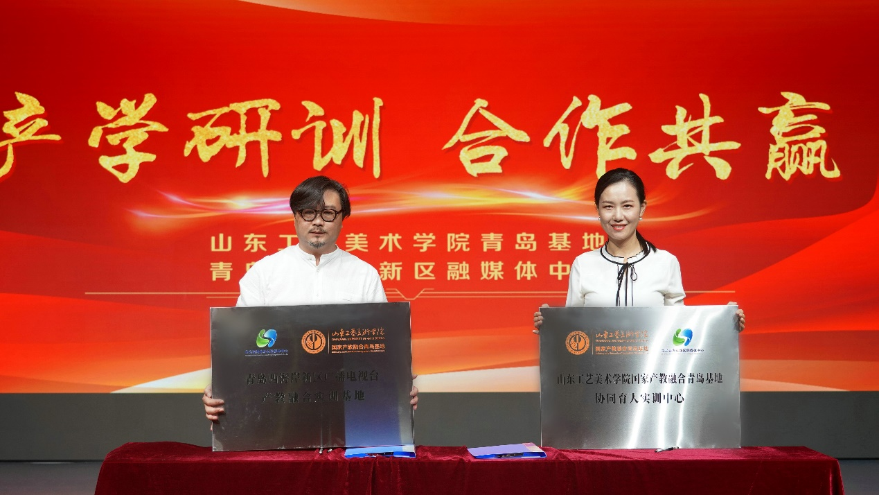 2022年8月30至9月16日,山东工艺美术学院数字艺术与传媒学院教师宋鲁、邢艳群带领2020级影视摄影与制作专业38名学生,在国家产教融合青岛基地开展为期三周的实践教学系列活动。本课程带领学生深入影视基地、公司、电视台,直接对接本土电视台的在播节目包装项目。经过前期调研、电视台发布栏目选题、策划分镜、后期制作等一系列课程实践后,合作单位西海岸新区广播电视台为《影视栏目包装》课程举行了实践教学优秀成果展映颁奖仪式,将优秀栏目包装作品直接应用于台内在播栏目,并与我校就产教融合校企合作协议进行了签约授牌仪式。