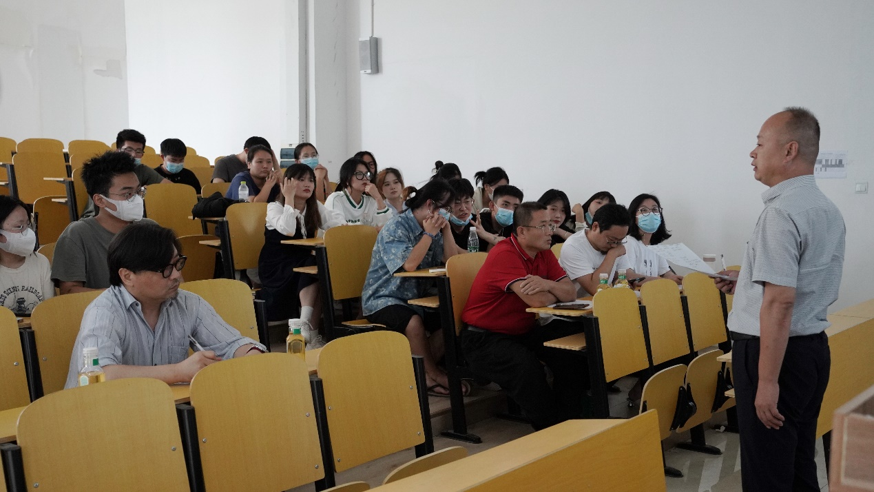 西海岸电视台新闻频道总监代志华、副总监张伟、后期制作主管柴华辉针对学生团队14组栏目包装设计的创意、分镜、动态成片等,根据行业要求和创作规范展开细致的点评指导。