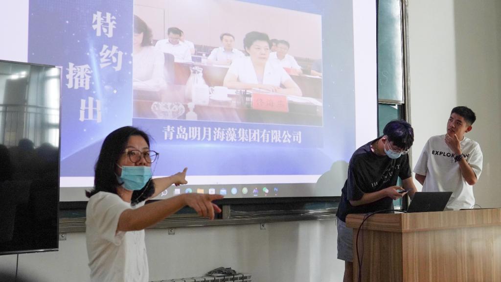 青岛西海岸新区融媒体中心(广播电视台)副书记、副台长纪宏斌、总编室主任丁凤凤与宋鲁教授、邢艳群副教授就企业导师进课堂、协同育人合作方式等进行建设性交流,并针对本次《影视栏目包装》定制课堂与西海岸电视台的合作落地进行了细化丰富。