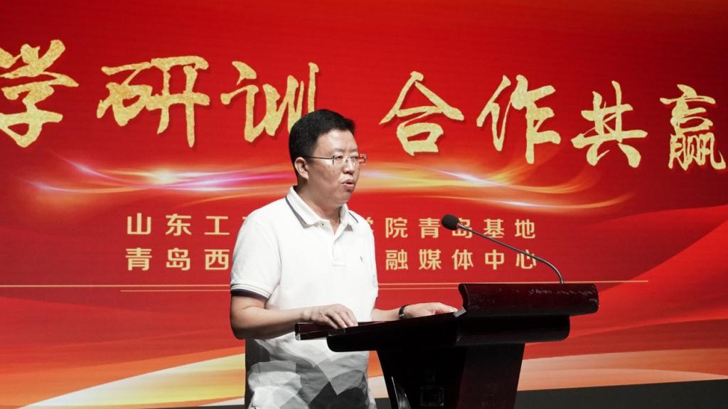 9月16日下午,数字艺术与传媒学院《影视栏目包装》课程实践教学优秀成果展映颁奖仪式、山东工艺美术学院国家产教融合青岛基地与西海岸融媒体中心协同育人签约授牌仪式,在西海岸新区电视台举行。产教融合青岛基地委员王向学副书记、委员邹渊副院长与数字艺术与传媒学院宋鲁教授、邢艳群副教授参加了活动。