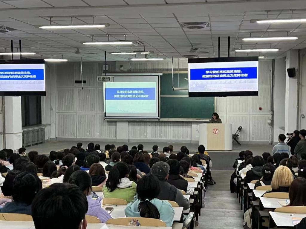 王华玲以“学习党的宗教政策法规,做坚定的马克思主义无神论者”为题,为新生详细地讲解了我国的宗教政策,以及宗教的含义、概况、特征等,明确指出共产党员、共青团员不能信仰宗教,不能参加宗教活动,要求同学们认真学好党的基本理论知识和科学文化知识,积极向党组织靠拢,做一名坚定的马克思主义无神论者。
