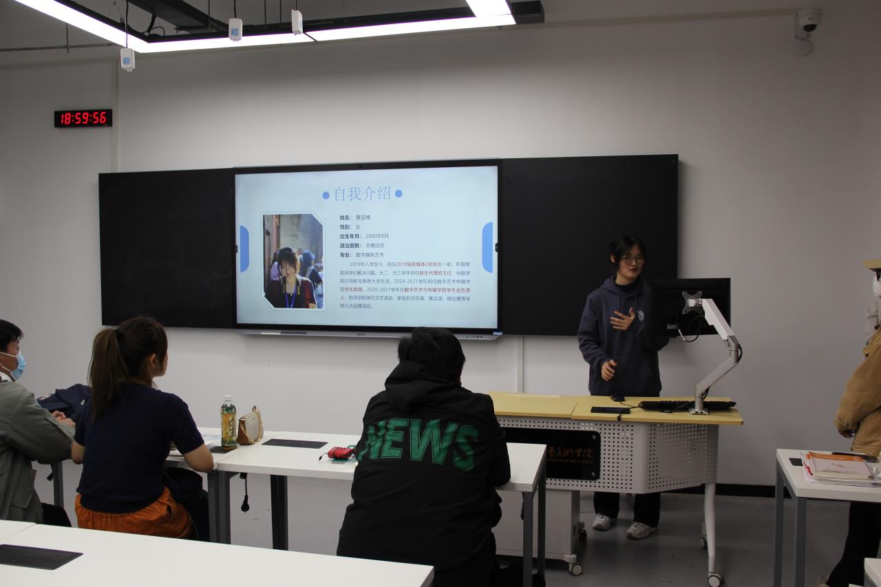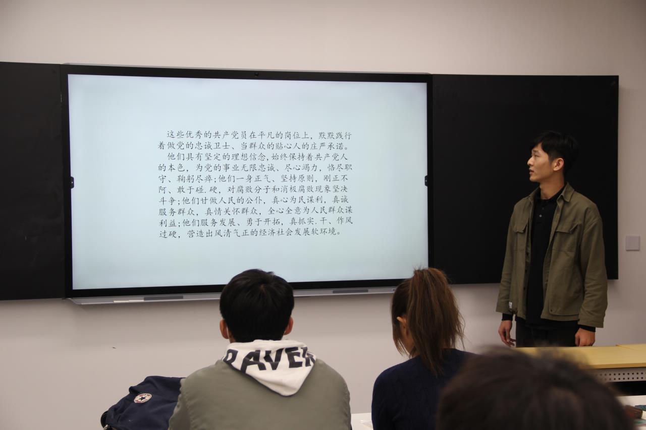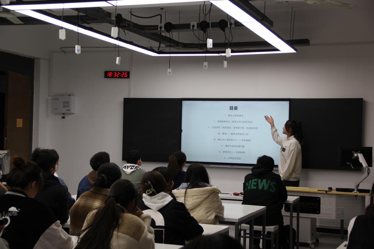 19级摄影班王兴新向大家分享了自己专业成长方面的感悟心得,与大家一同观看“三下乡”社会实践的活动视频,号召大家将专业知识与社会实践结合起来,更好地为社会服务。19新媒体班黄亚楠同学向大家讲解了国家奖学金申报条件,以自身事例让大家认识到一名党员就是一面旗帜,要充分发挥先锋模范作用,做学习上的标兵、生活中的模范、工作上的榜样。20级戏剧班胡美菁同学向大家介绍入党要求,梳理了入党流程。