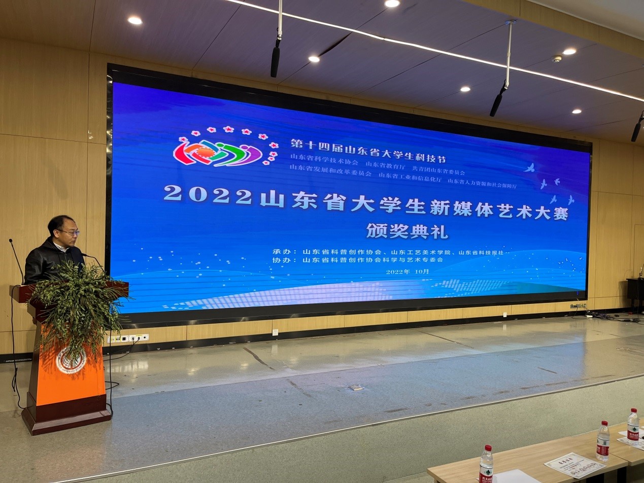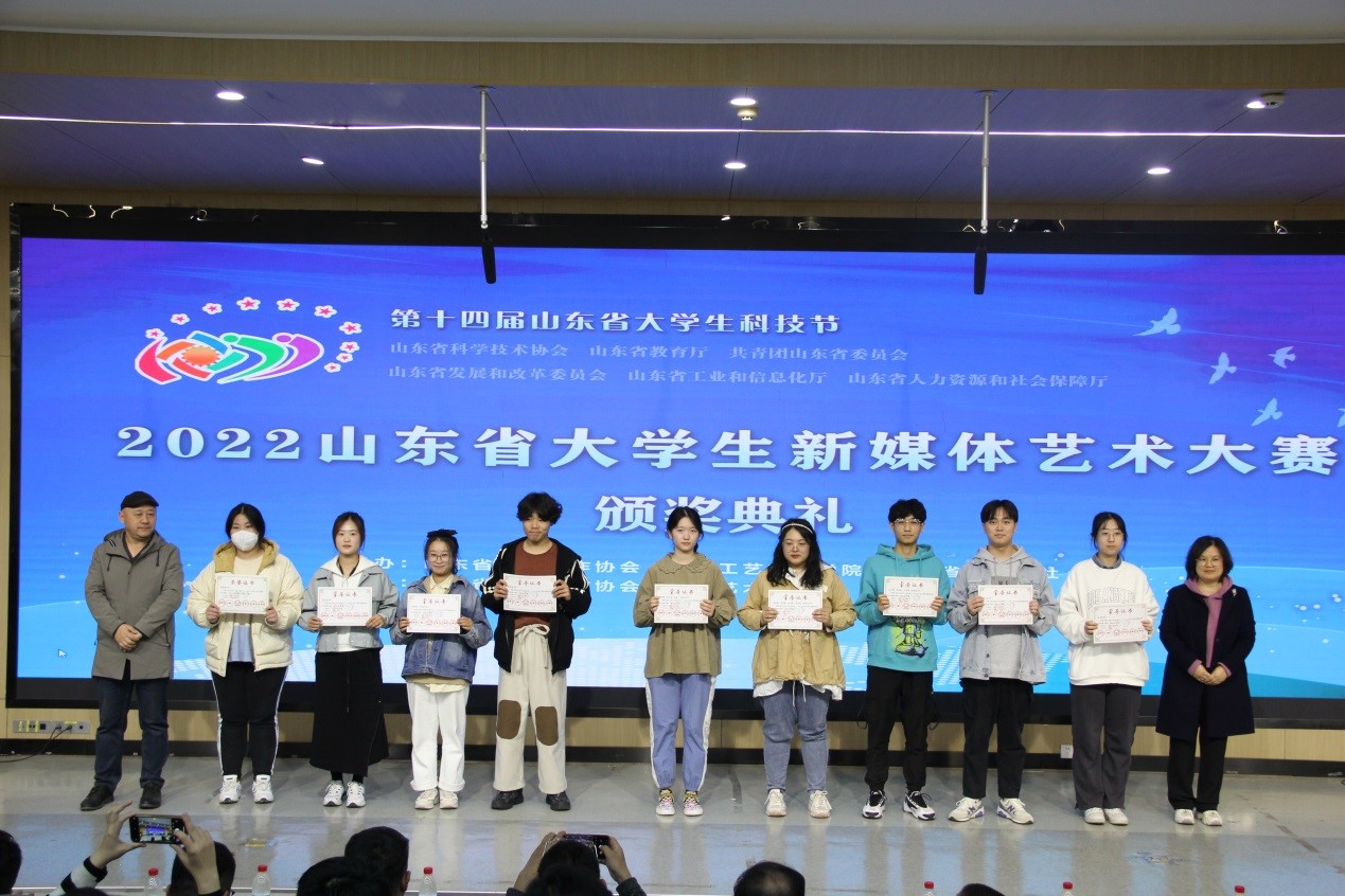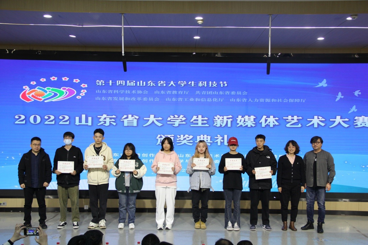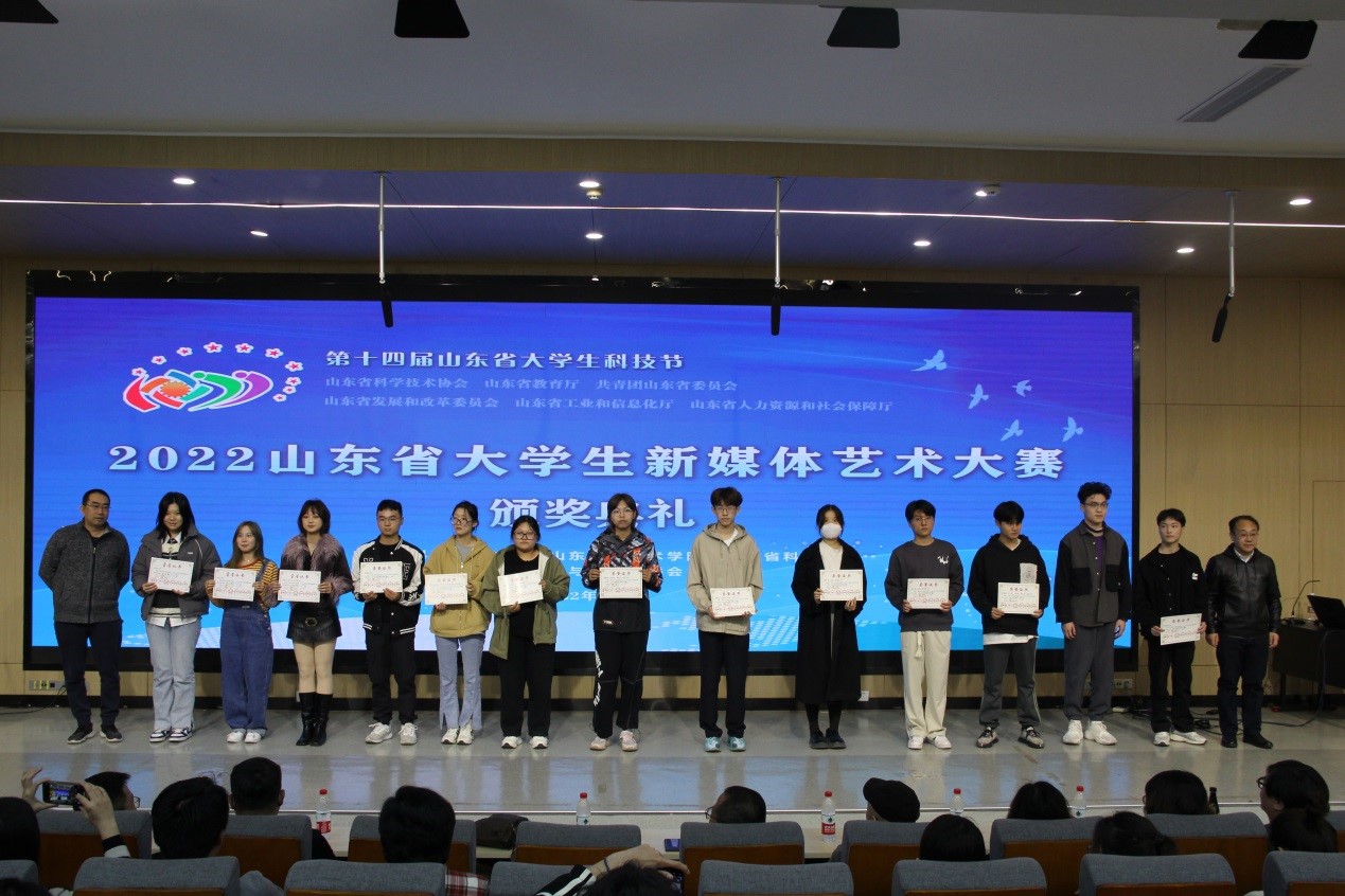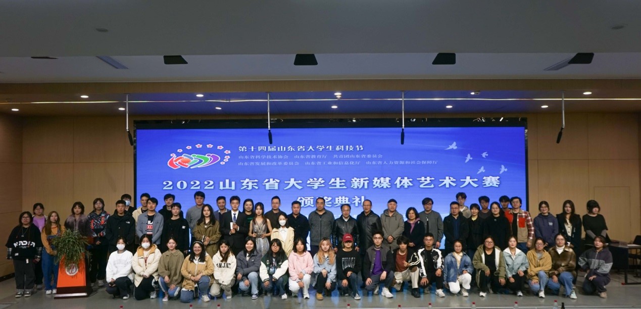 2022年10月28日上午,2022山东省大学生新媒体艺术大赛和2022第十五届中国大学生计算机设计大赛山东省级赛颁奖典礼在我校举行。数字艺术与传媒学院在两个大赛中取得佳绩。