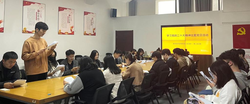 为深入学习宣传贯彻党的二十大精神,把党员思想和行动统一到党的二十大精神上来,数字艺术与传媒学院学生第一、第二党支部开展了“学习党的二十大精神”主题党日活动。本次活动由学生第一党支部书记巩珂主持。