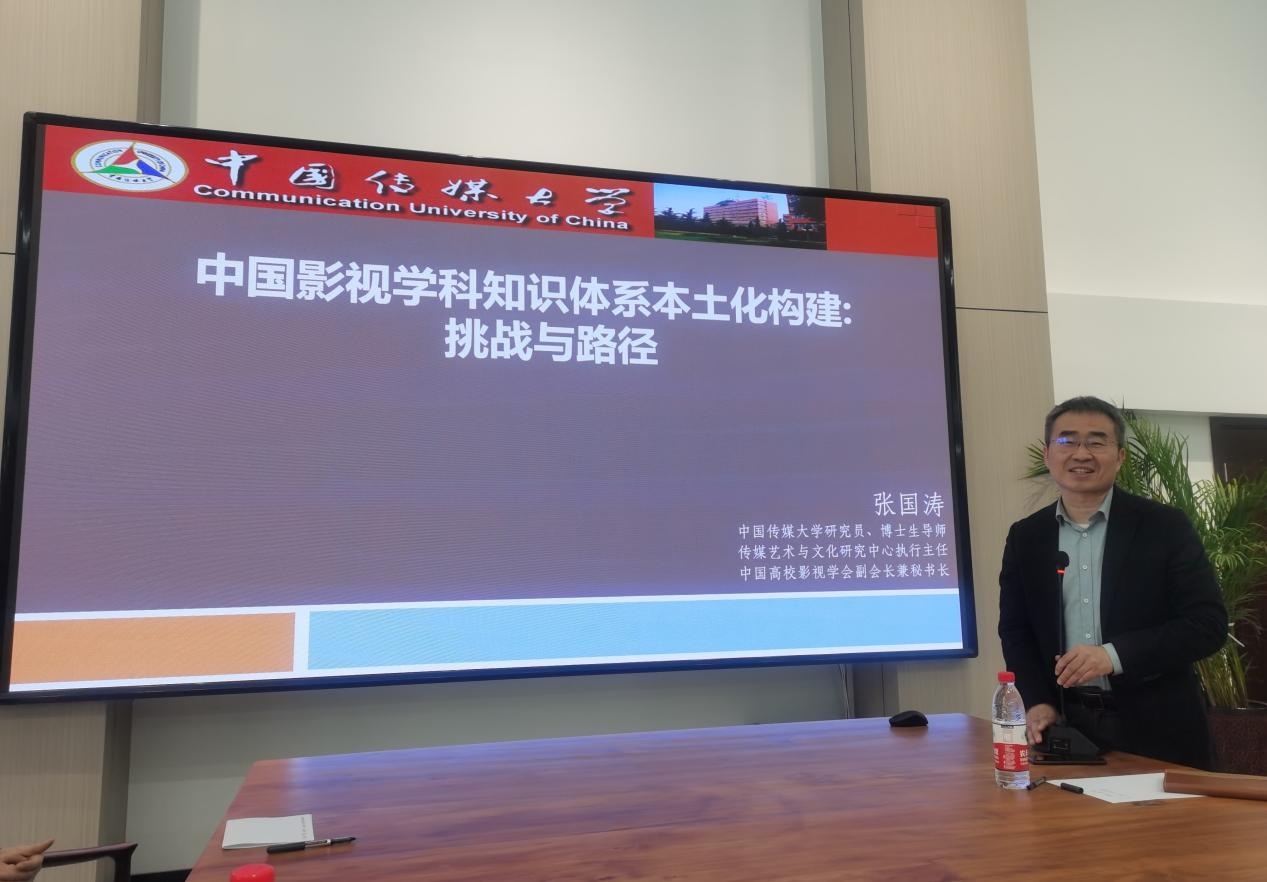 在讲座中,张国涛社长以《中国影视学科知识体系本土化构建的挑战与路径》为题展开,围绕中国影视学科与知识体系的建构,结合国家新一轮学科调整的背景,戏剧与影视学科发展的历史与趋势,论述了中国影视学科发展的历史、现状与问题;在讲座中详细梳理了中国电影学、广播电视艺术学知识生产的历史脉络,并在此基础上,阐述构建中国特色影视学科知识体系的基础、方法、载体和核心等内容,鼓励教师们结合专业特色与学科建设,以教材为载体,推进中国影视学科知识体系本土化,提升中国知识体系的渗透与普及。