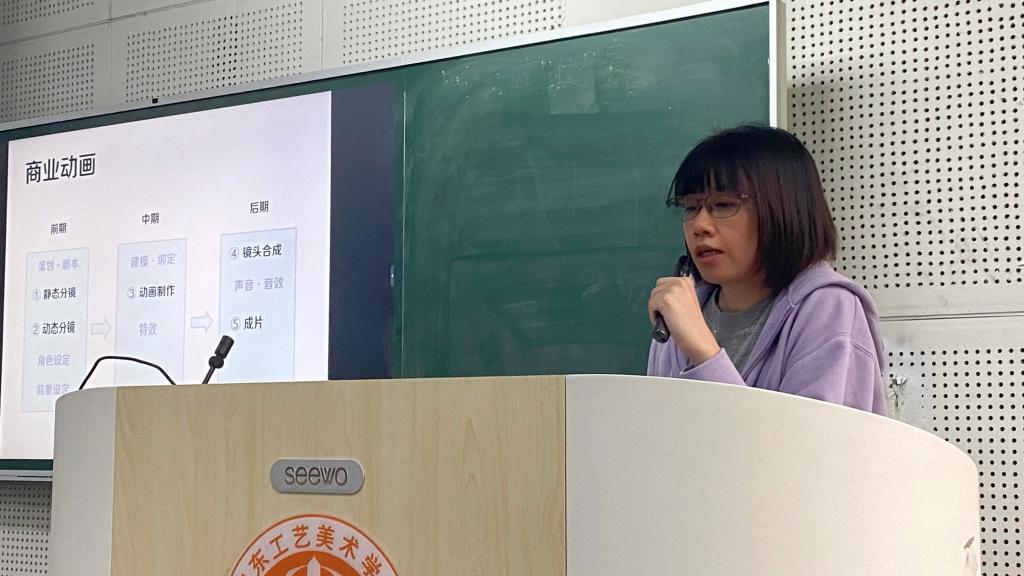 讲座历时一个半小时,讲座上,胡华就动画的创作原理、什么是动画、以及动画的分类方式三方面做出了细致的解析,并通过视频资料给同学们提供广阔涉猎,带来生动的视觉体验。让同学们在欣赏优秀动画作品的同时体验动画作品的创作流程。胡华向我们详细讲述了商业动画的创作过程,并从“前期策划”、“中期制作”、“后期合成”三个角度出发,作出细致讲解。