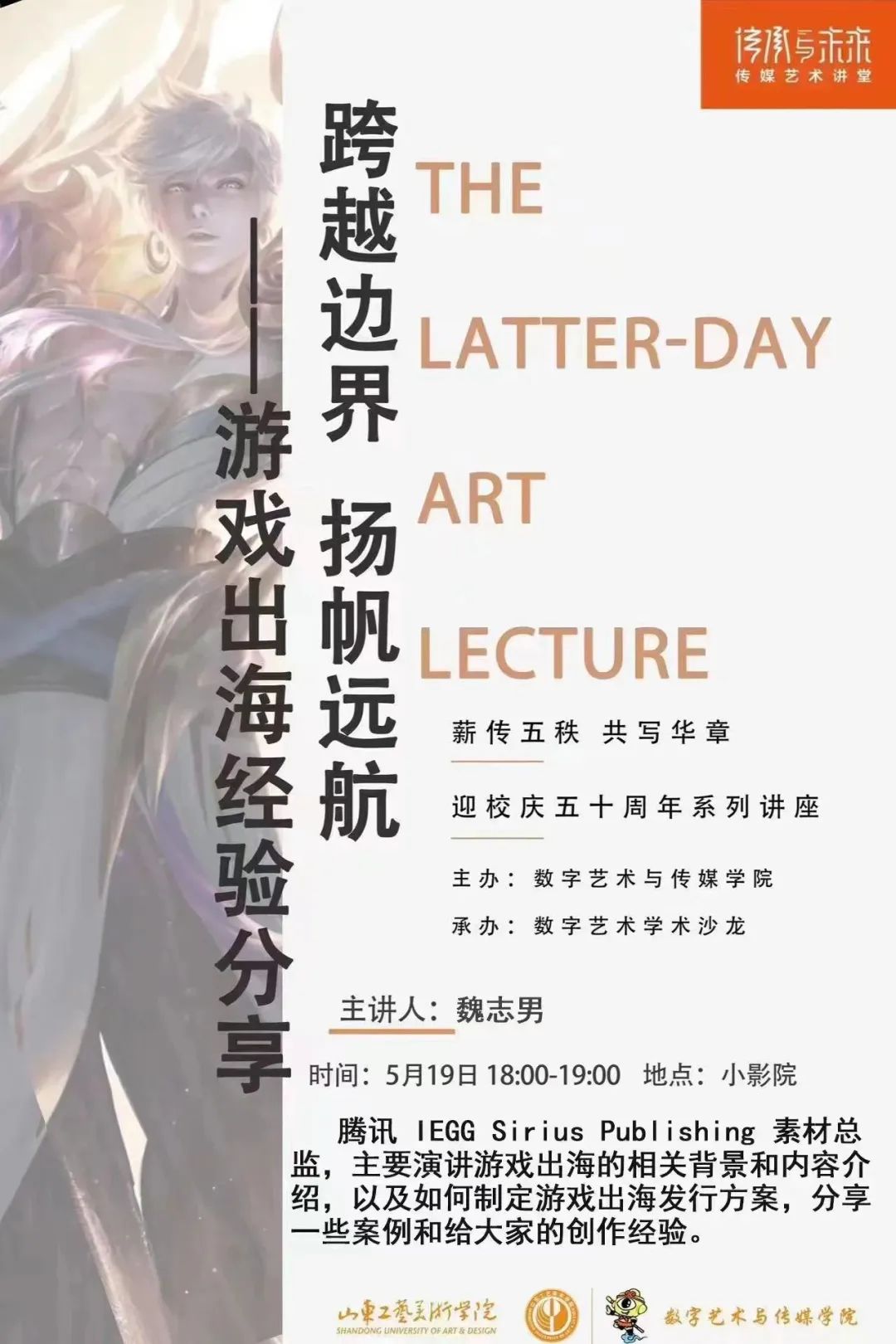 2023年5月19日下午,数字艺术与传媒学院邀请2005级动画专业毕业生魏志男老师回母校进行了主题为“跨越边界,扬帆远航——游戏出海经验分享”的讲座。我院数字媒体艺术(游戏艺术设计方向)专业教师张丽丽主持了本次讲座。数字学院游戏艺术设计专业和动画专业部分学生参与了本次讲座。