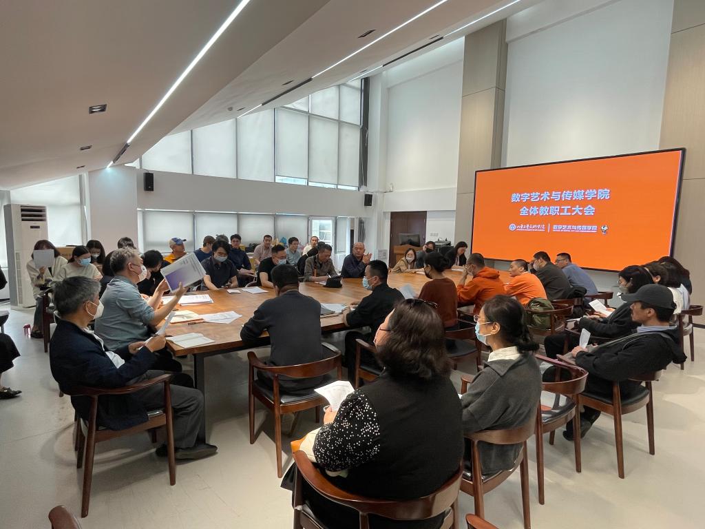 5月29日下午,数字艺术与传媒学院在学院多媒体教室B446召开全体教职工大会。数字艺术与传媒学院党政领导班子成员及全体教职工参会。