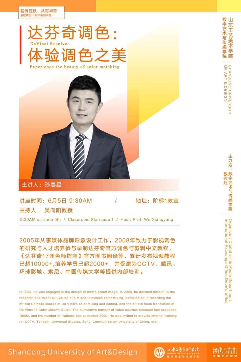 主讲人简介:孙春星,2005年从事媒体品牌形象设计工作,2008年致力于影视调色的研究与人才培养参与录制达芬奇官方调色与剪辑中文教程、《达芬奇17调色师指南》官方图书翻译等,累计发布视频教程已超10000+,培养学员已超2000+,并受邀为CCTV、腾讯、环球影城、索尼、中国传媒大学等提供内部培训。