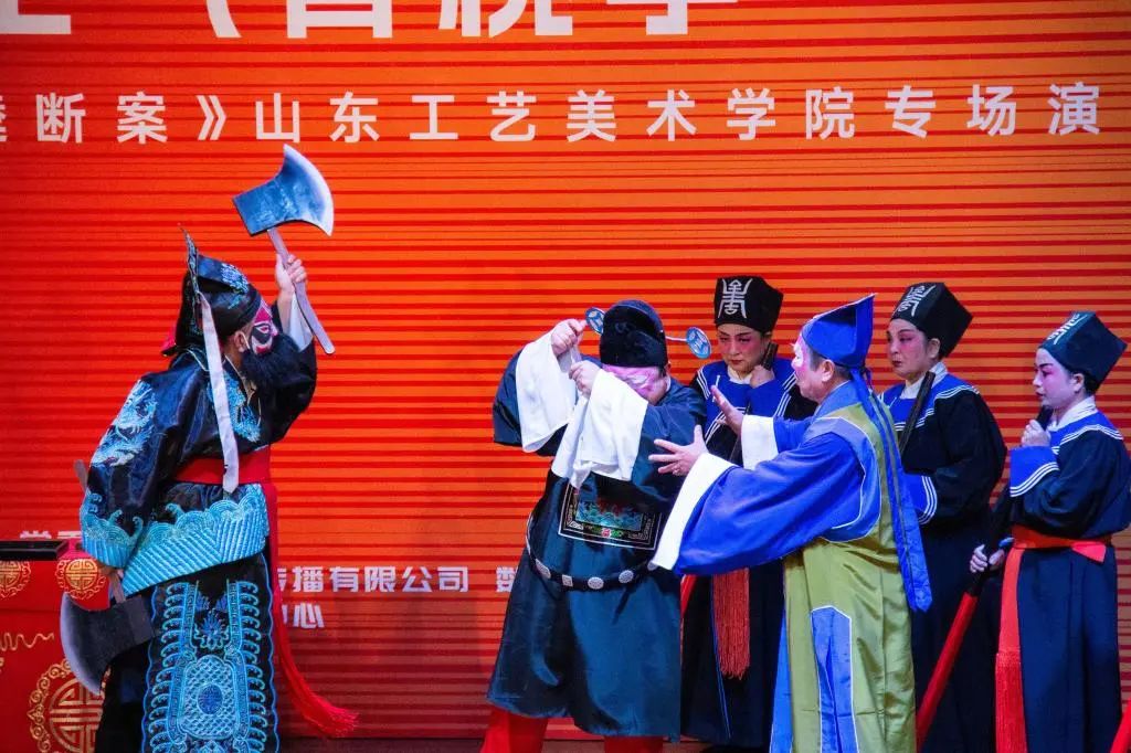 《李逵断案》是省级非物质文化遗产蟠龙梆子传统剧目,讲述了梁山好汉李逵路遇不平官司,为伸张正义,他自任寿张县令,断明一系列冤假错案、惩恶扬善,诫打无良不孝子和贪官,开仓放粮救济灾民,肃清社会不良风气的故事。演员们用戏曲形式讲述传统故事,弘扬廉洁文化,精湛的表演技艺赢得了师生阵阵掌声与喝彩。