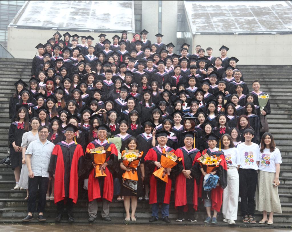 之后,在激昂的校歌声中,数字艺术与传媒学院学术委员会吴向阳、张光帅、于平、韩青、肖文津等五位教授为毕业生拨穗,授予并颁发学位证书。