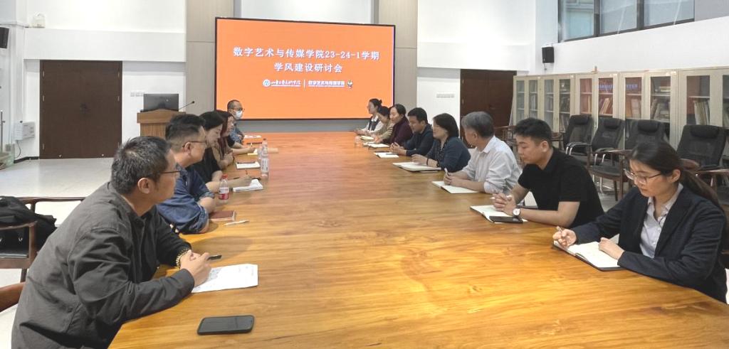 为进一步加强我院常态化学风建设,营造风清气正的育人环境和健康向上的的学习氛围,9月27日下午,数字艺术与传媒学院在学院会议室召开学风建设研讨会。院长吴向阳,书记李清华,副院长张光帅,各教研室主任,教学秘书及各年级辅导员参会。本次会议由张光帅主持。
