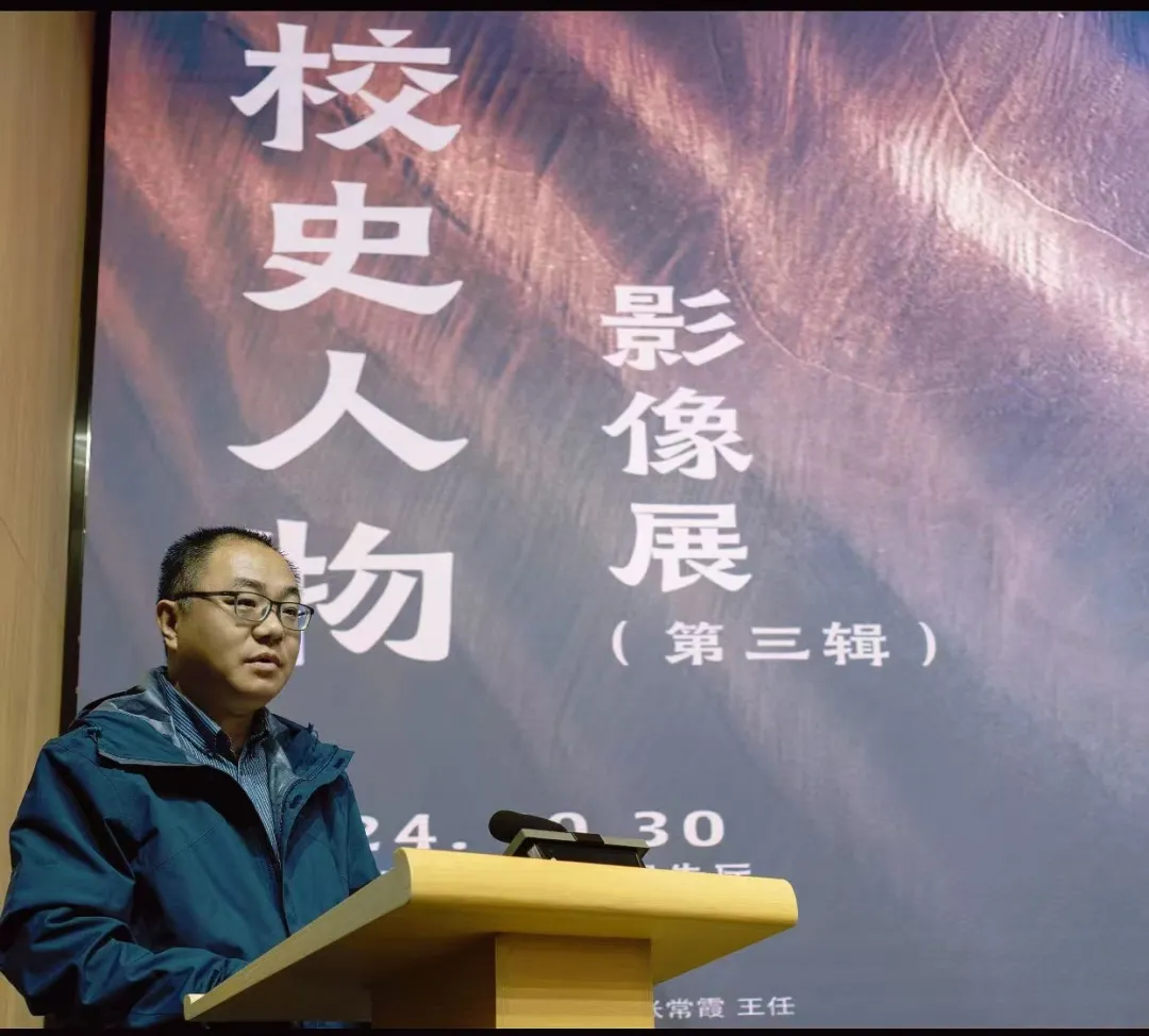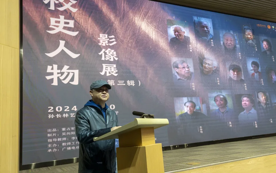 第三项议程中董占军院长发表题为《薪火相传的山工艺力量》重要讲话。他指出,举行“校史人物影像展”,既是对老一代的回顾和致敬,也是对年轻一代的展望和期许。在学校的发展进程上,老教授、老学者、著名艺术家,是艺术与设计大学的宝贵财富,是鲜活生动的教材和样板,永远值得后辈学习和景仰。应该校庆之际,致敬前辈,宣传校史人物,梳理文脉谱系,汲取榜样力量,在校内校外讲好“山工艺故事”、传播“山工艺故事”、续写“山工艺故事”。董占军强调,校史人物影像记录工作,是为大学校史建立影像档案,是大学精神文化建设的重要内容。每一位师生员工,都是学院力量的一份子,都是学院发展史的书写者。全体山工艺人要握紧历史的“接力棒”,紧跟时代步伐,积极应对科技变革与时代召唤,跑进新赛道,跑出新水平!