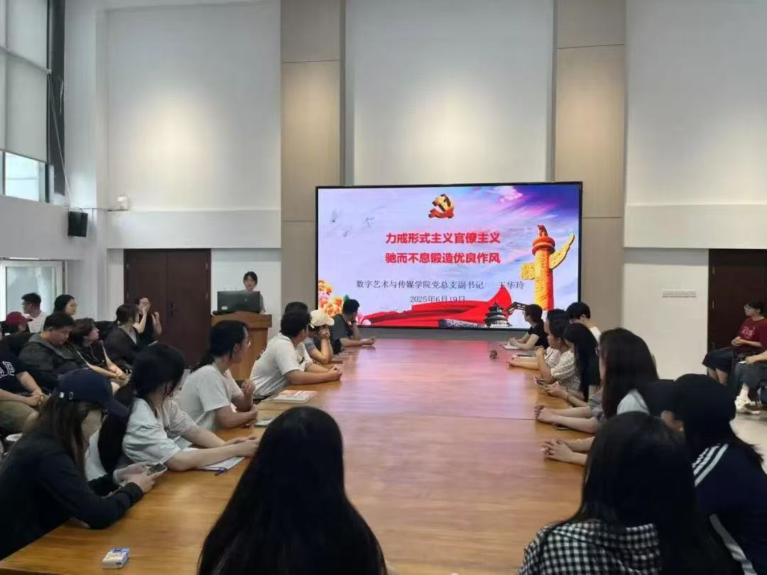 为深入学习贯彻习近平新时代中国特色社会主义思想和党的二十届三中全会精神,深入领悟习近平总书记关于加强党的作风建设的重要论述,全面落实中央八项规定精神,2025年6月19日,数字艺术与传媒学院在多媒体教室B446开展深入贯彻中央八项规定精神学习教育专题党课。我院院长吴向阳和党总支副书记王华玲主讲,本科生党支部、研究生党支部党员参加。
