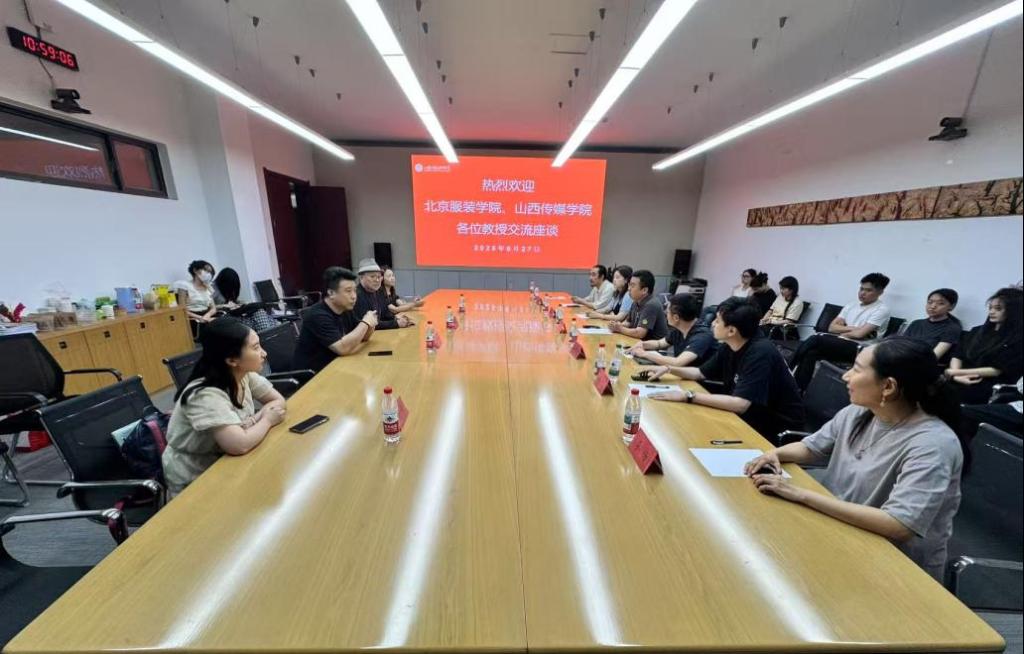 6月27日上午,北京服装学院教授丁肇辰、熊红云,山西传媒学院教授李刚、杨丹与数字艺术与传媒学院进行交流座谈。数字艺术与传媒学院副院长张光帅、游戏艺术设计教研室主任牟堂娟、专业教师王博、新媒体艺术教研室副主任张牧、服装学院专业教师骆顺华、数字艺术与传媒学院教学秘书王皎以及数字艺术与传媒学院、服装学院研究生们参与座谈。