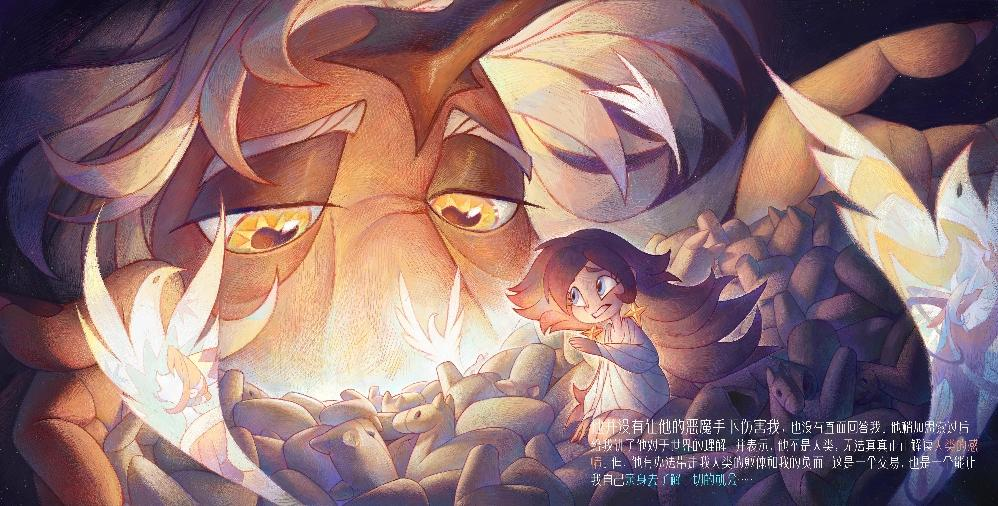 但是不经处理直接采用,在我看来有些过于生硬和枯燥。所以,我决定创造一个独立的人物作为创作中心,并将自己的素材和想法经过艺术化处理和修饰,并代入到这个人物的设定里——一个在环境变迁影响下被推着前进、不断思考、认识世界并一直成长的角色,就像我自己的成长历程一样,而去填补故事背景,就像在写我眼中的世界: