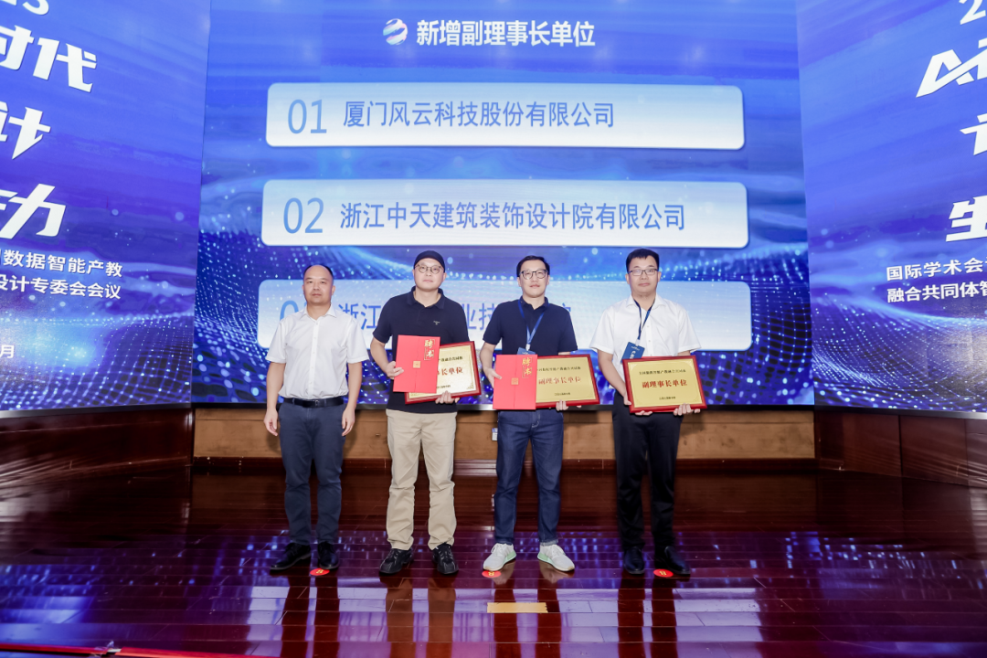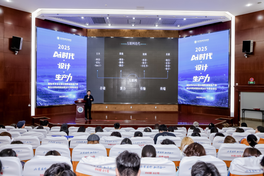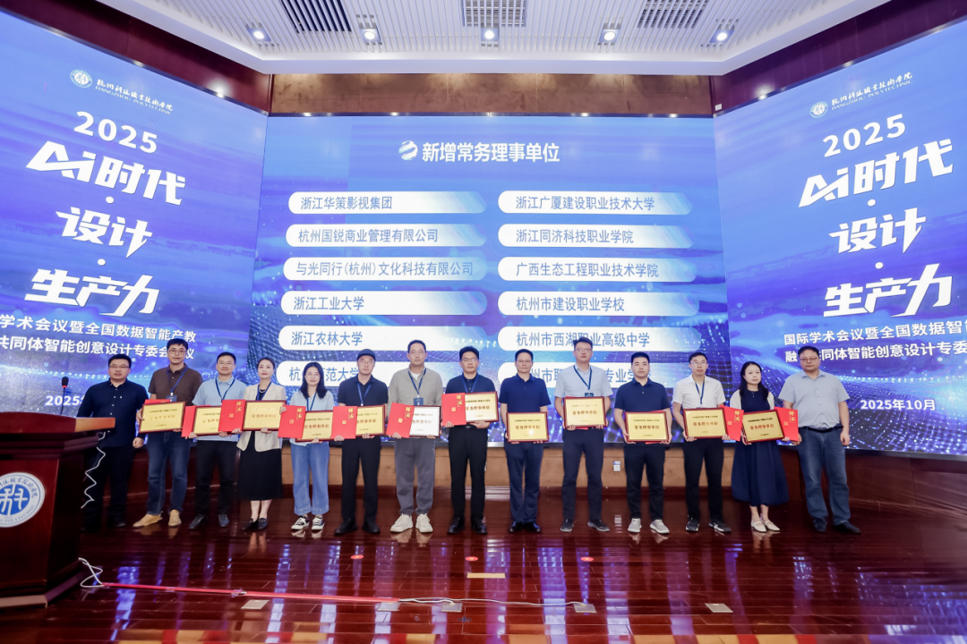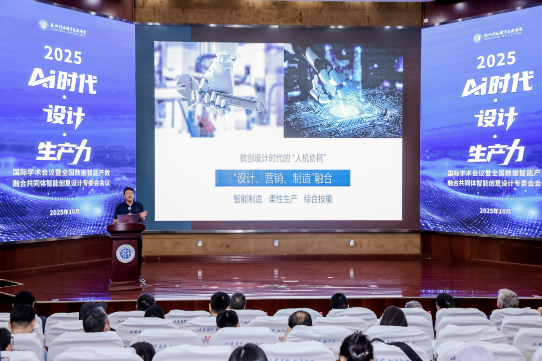 10月14日,2025年“AI时代?设计?生产力”国际学术会议暨全国数据智能产教融合共同体智能创意设计专委会会议在杭州科技职业技术学院举行。杭州科技大学校长温正胞,杭州群核信息技术有限公司副总裁汤锡峰,浙江华策影视集团副总裁夏欣才,中国传媒大学动画与数字艺术学院党委书记、教育部动画与数字媒体专业教学指导委员会秘书长黄心渊,广东轻工职业技术大学艺术设计学院院长、教育部职业院校艺术设计类专业教育指导委员会副秘书长兼产品设计专门委员会主任委员桂元龙,美国密歇根大学博士、同济大学设计创意学院教授、尚想实验室主任康思大(Kostas Terzidis),设计战略家与设计教育者奥拉·汉德福德(Ola Handford),环境与空间设计专家、STOREAGE设计总监金仙英(Sunny kim),同济大学设计创意学院教授、博导陈健,浙江科技大学艺术设计与服装学院院长、教授郑林欣出席活动。智能创意设计专委会主任、我校数字艺术与传媒学院副院长张光帅,副秘书长、我校数字媒体艺术设计教研室主任牟堂娟,已经专委会理事,我校新媒体艺术设计教研室副主任张牧等老师受邀出席活动。相关兄弟院校代表、企业代表、学校相关职能部门代表、学院师生参加开幕式。